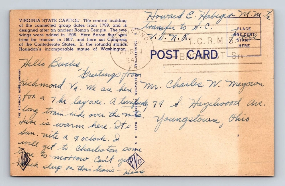 City: Richmond Theme: Cities & Towns Region: Virginia Unit of Sale: Single Unit Type: Printed (Lithograph) Original/Licensed Reprint: Original Era: Vintage Country: USA Postage Condition: Posted Country/Region of Manufacture: Unknown Subject: Cities & Towns