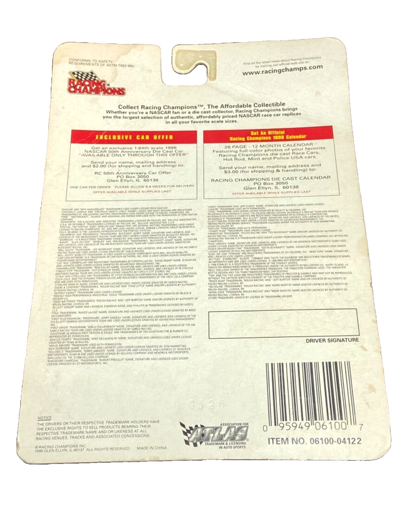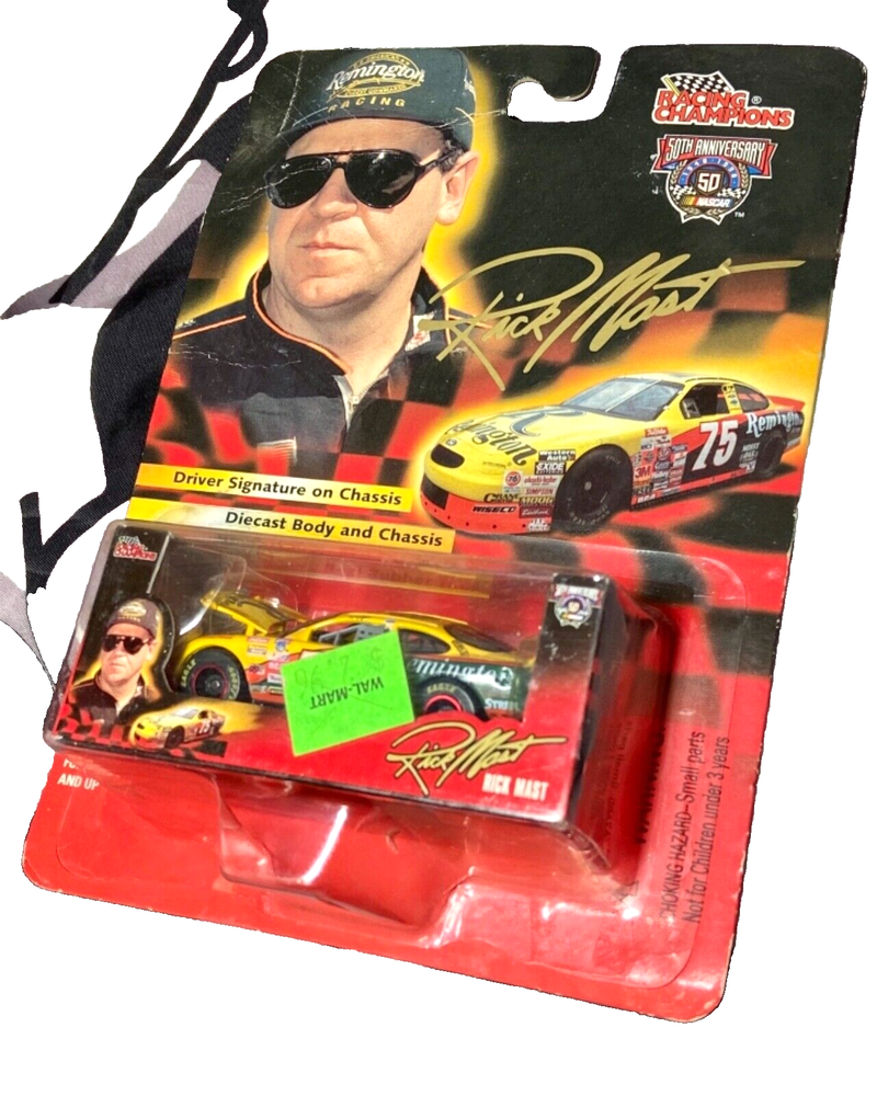 Vehicle Year: 1998 UPC: Does Not Apply Race series: Daytona Features: Advertising Specimen, Limited Edition, Unopened Box Organization: NASCAR Driver: Rick Mast Vehicle Type: NASCAR Racecar Age Level: 17 Years & Up Color: Multi-Color Recommended Age Range: 17+ Brand: Racing Champions Vehicle Make: Chevrolet Theme: Nascar gtin13: Does Not Apply Country/Region of Manufacture: China MPN: Does Not Apply Character Family: Nascar Series: 50th Anniversary Material: Diecast Autographed: Yes Scale: 1:64 Model: 50th Anniversary