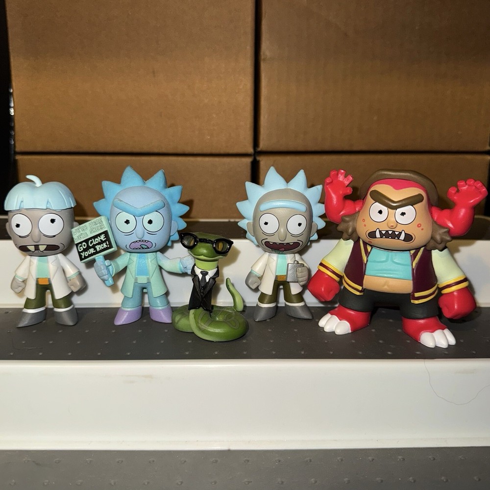 I can sell separately, message me for separate pricing This lot includes 11 Rick and Morty Funko Mystery Minis Included are: 1/6 Mr. PBH 1/6 Teddy Rick 1/12 Summer 1/12 Beth 1/12 Arthricia 1/12 Bird Person 1/24 Doofus Rick 1/24 Morty Jr. 1/12 Drunk Rick with Flask Target Exclusive 1/12 Glow Hologram Rick GameStop Exclusive 1/24 Asher Hess GameStop Exclusive Figures are in good condition, each will be individually bagged for protection. Figures may have minor imperfections such as scratches or blemishes Will ship with care If you have any questions please ask me! :)