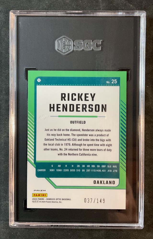 Rickey Henderson 2024 Donruss Optic Lime GREEN COLOR MATCH #25 /149 SGC 10 Gem Mint Pop 1