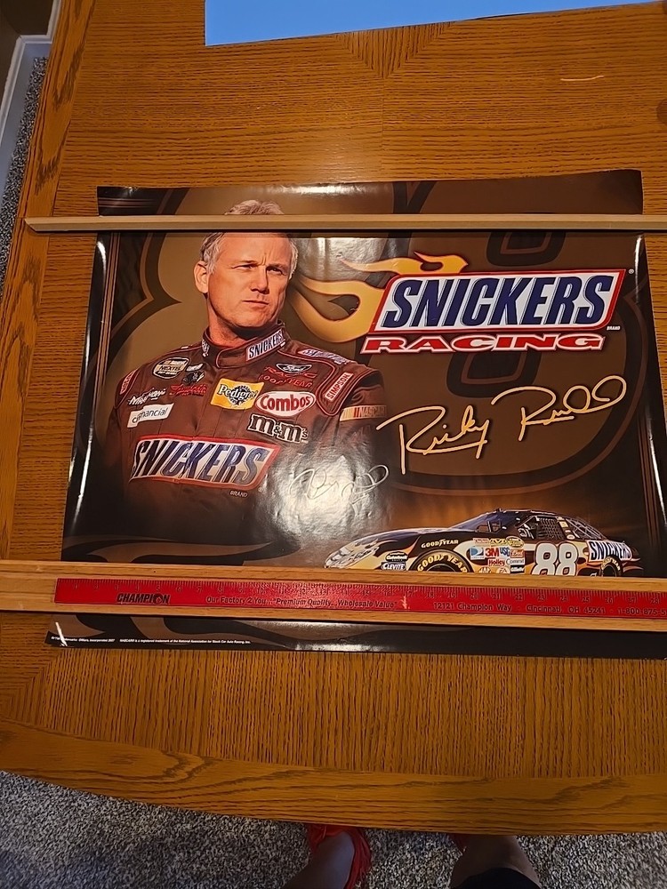 The Ricky Rudd Snickers Racing Poster is a 29.5x25 autographed collectible featuring the legendary NASCAR driver. This officially licensed product showcases the Ford Racing team colors and is perfect for fans of auto racing and Ricky Rudd. Made in the United States, this poster is a must-have for any collector looking to add a piece of racing history to their collection.
