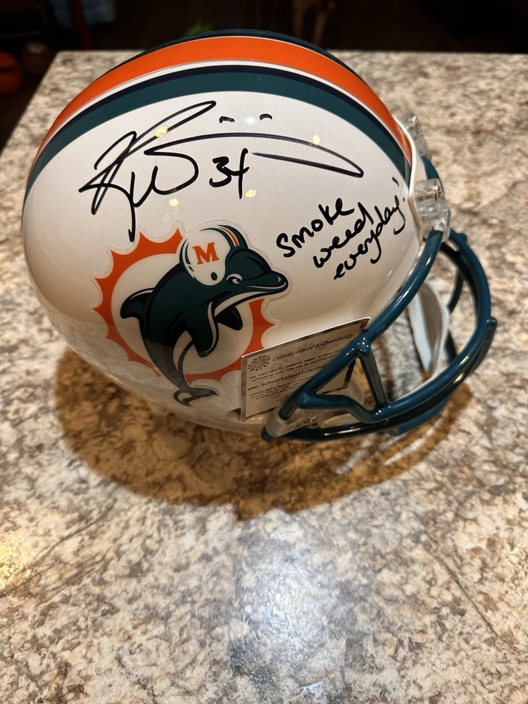 The product is a full-size football helmet signed by Ricky Williams, making it an original autographed piece. Specifically designed for fans of football, this helmet is a unique collector's item that showcases Williams' signature. It is a must-have for any collector or fan looking to add an authentic piece of memorabilia to their collection.