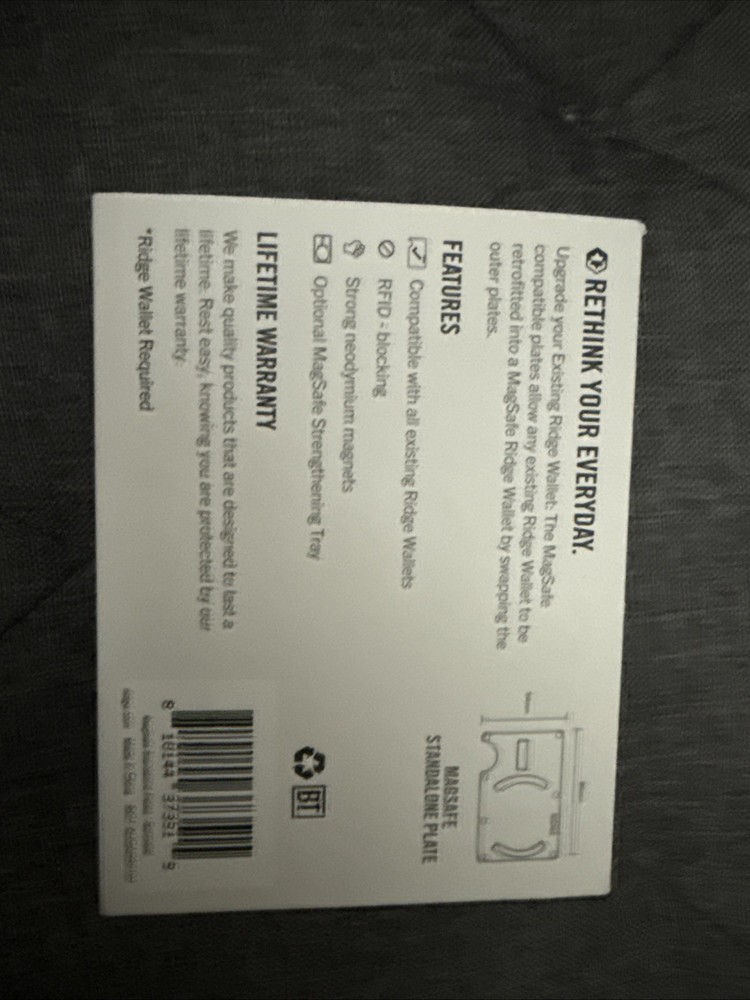 The Ridge MagSafe Stand Alone Plate is a sturdy and sleek plate made from aluminum in a stylish gray color. This plate is designed specifically for men, with a wallet compartment for easy storage of your cards and cash. The Ridge brand ensures quality and durability, making this wallet a practical and fashionable choice for everyday use. Must have a Ridge wallet as this is just the standalone plates for MagSafe.
