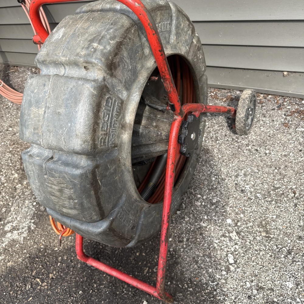 Ridgid sewer camera reel standard 90’ long cable . No kinks on cable camera head non self leveling working as it should. Reel only no monitor.
