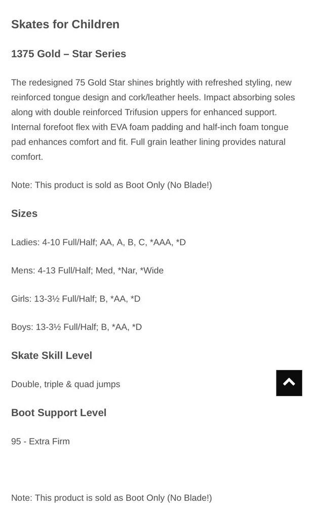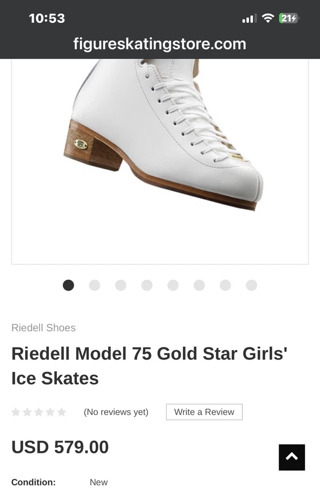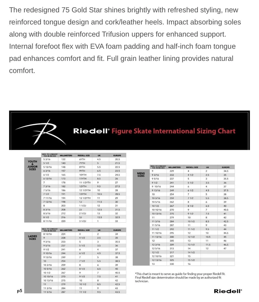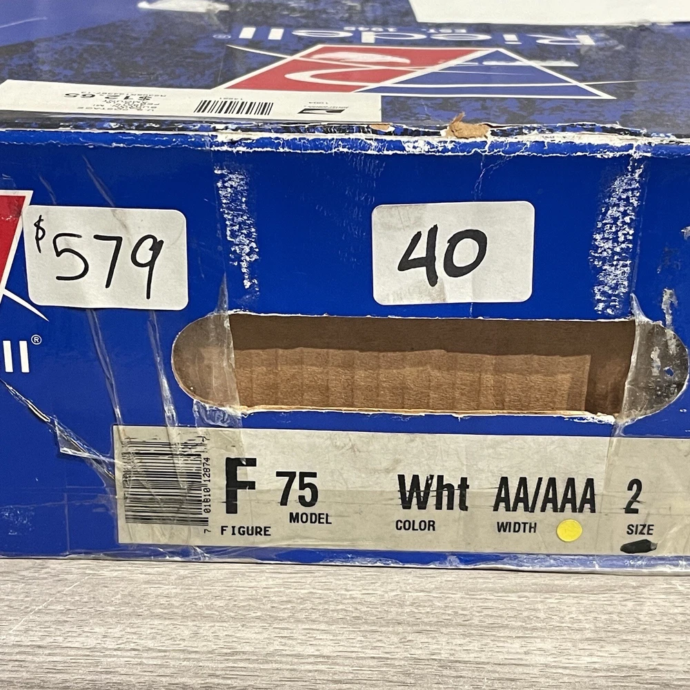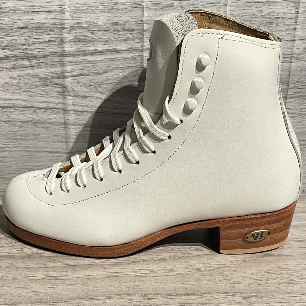 Riedell Model 75 Gold Star Figure Ice Skate Boots Only Girls Size 2 AA/AAA (X-Narrow) Store price $579 Discontinued Hard to find Rare New Old Stock Made in USA SEE SPEC & SIZING PICTURE