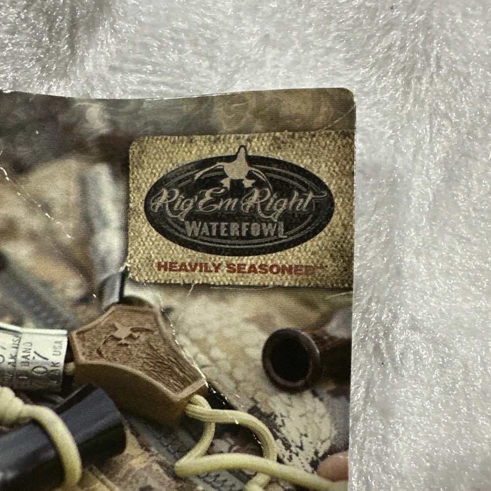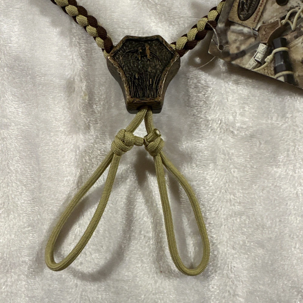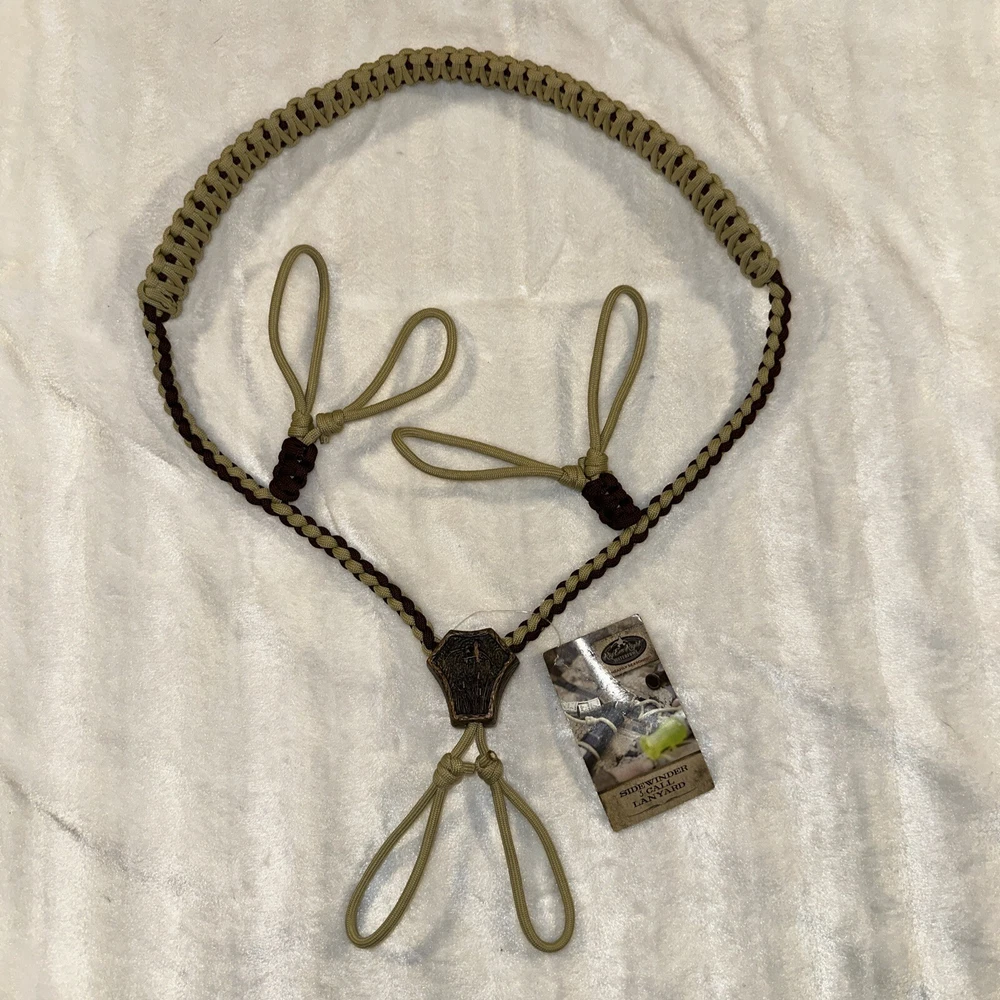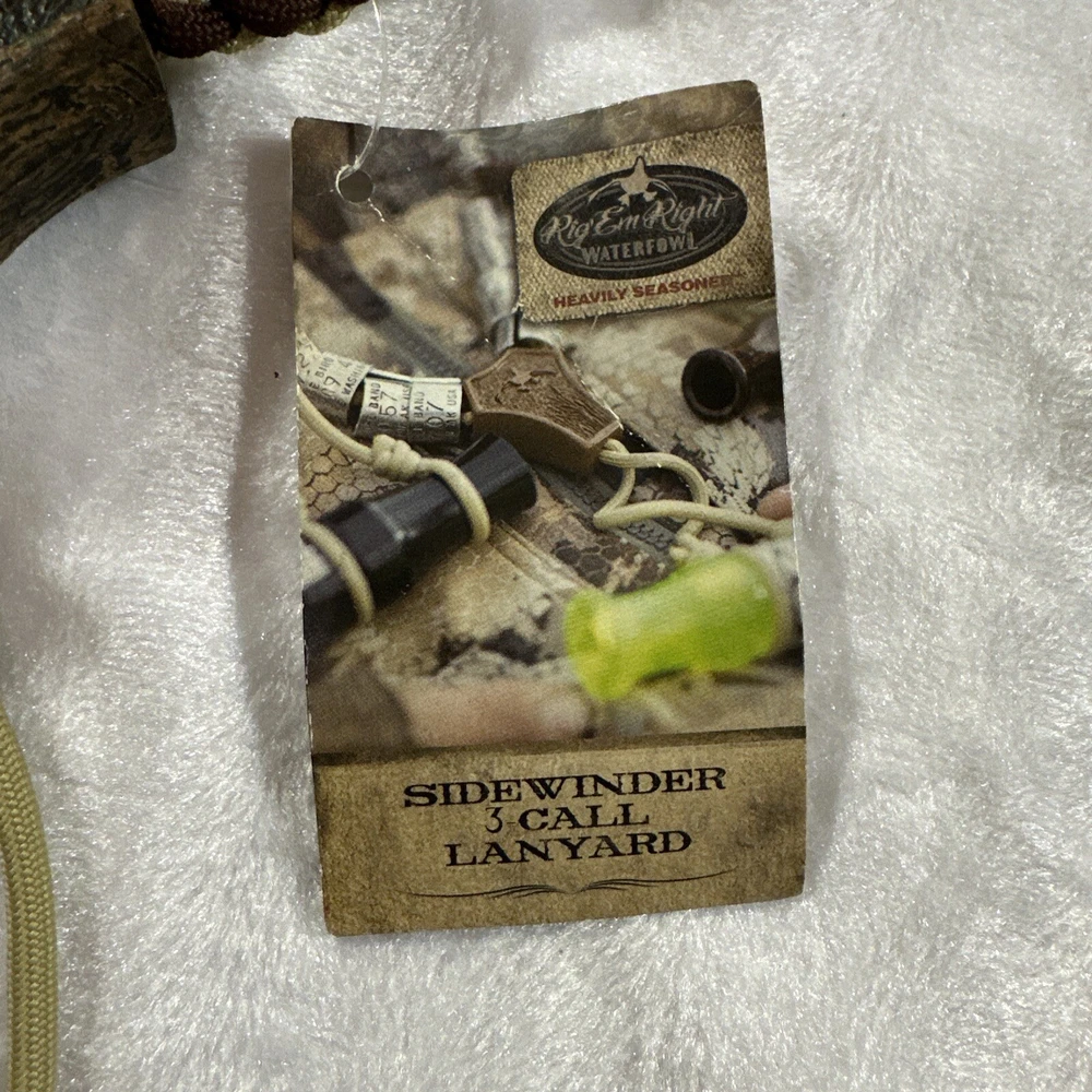 Refer to photos This Rig'em Right sidewinder 3 call lanyard is a must-have for any duck hunter. It holds up to three calls and is made in China. The lanyard is designed to be convenient and easy to use, with a brown color that blends in well with any hunting outfit. The brand is known for its quality and durability, making this lanyard a reliable choice for any hunting trip. Whether you're a seasoned hunter or just starting out, this lanyard is a great addition to your hunting gear. It's perfect for carrying calls and other small items, so you can focus on your hunting without having to worry about losing your belongings.