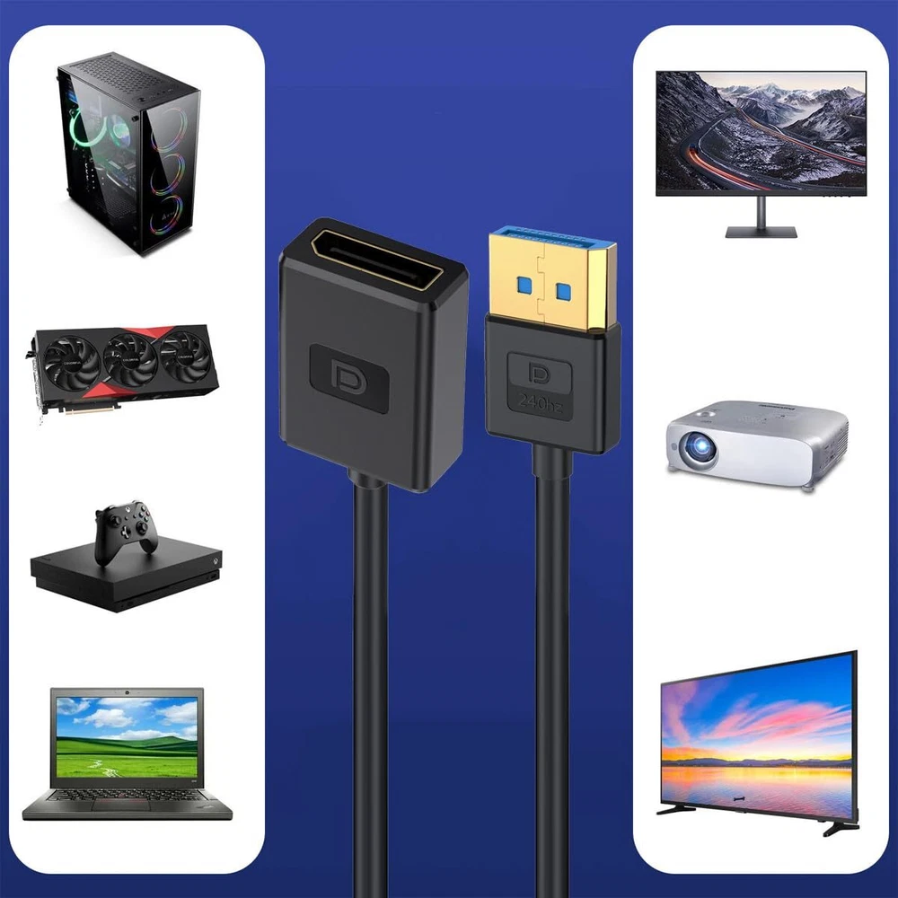 eBay Product Listing Welcome to Your Favorite My Store Your satisfaction is our top priority – Shop confidently Right Angle Displayport 1.4 Extension Cable, 90 Degree DP Male to Female Cable (8K/60Hz, 4k/144Hz), Short Display Port 32.4Gbps for Gaming Monitor, TV, PC, Laptop (Straight) Item Gallery Item Description HIGH RESOLUTIONS 8K Displayport 1.4 feature support for high-bandwidth HBR3, 32.4 Gbps bandwidth, DSC 1.2 display stream compression and HDR10. Resolution up to 7680x4320, refresh rate up to 8K60Hz, 4K144Hz, 2K165Hz. Backward compatible with DisplayPort 1.3/1.2. Special 90 Degree angled design is perfect for when you are connecting within a limited space environment. with 28AWG Tinned copper and triple-layer shielding to transfer stable video and audio signals. Short and Flexible displayport extender cable cord is easy to carry and tranmission the data between your office and home theater, games and other scenes through external displays. Compatible with Samsung, Dell, LG, HP, ASUS, Acer, Alienware gaming monitors. Supports DP, DP++, and DisplayPort++.It will be so great to use Adoreen Displayort 1.4 cable to show your Cyberpunk 2077 gaming skill on RTX3080. Also compatible with graphics cards, like Radeon R9 290, Geforce GTX 980/1080, HD Graphics 4600,ASUS HD 7970 DCII. Notice: The Cable Not DP to HDMI, Not Mini Displayport. Cable Length:30cm Special Features 8K DisplayPort Male to Female Extension Cable. Notice: The Cable Not DP to HDMI, Not Mini Displayport. 8K UHD DisplayPort 1.4 Cable 8K60Hz(7680x4320P60Hz);4K144Hz;2K165Hz 32.4 Gbps bandwidth HBR3, CEC, EDID, HDCP2.2,HDR10 4:4:4 3D Format,32 audio channels Backwards compatible with DisplayPort 1.3/1.2/1.1. Special 90 Degree angled design is perfect for when you are connecting within a limited space environment. Compatible with Free-Sync and G-Sync technology More Surprise Works for the latest devices, such as GTX1070, GTX1080, RTX2070, RTX2080, RTX3060, RTX3070, RTX3080, RTX3090, ASUS ROG Swift PG279Q / PG348Q / PG258Q gaming display, Samsung C27HG70, Acer Predator XB271HU, Dell Ultra HD 4K P2715Q, Zowie and MSI Full HD Non-Glare. Cable Length:30cm. Our Guarantee To You We offer fast shipping, free delivery, and 100% customer satisfaction guarantee. Not satisfied? Return your item for free within 30 days. 30-Day Free Returns Shipping Details Items will be sent to your eBay address. Please verify before purchasing. Typical delivery within 3-7 business days. Professional shipping services used for all orders. We ship to the continental US (48 states only). Unable to deliver to Alaska, Hawaii, or territories. No APO/FPO or PO Box deliveries available. We use eco-friendly packaging Payment Options We accept these secure payment methods: All transactions securely processed through eBay's payment system. Simple Returns 30-Day Satisfaction Promise Contact us through eBay messages within 30 days of delivery. We'll provide return instructions and our address. Return the item in its original condition. We'll process your refund within 48 hours of receiving the item. Get In Touch Have questions about your order? Contact us through eBay messaging for prompt assistance. We typically respond within 24 hours.
