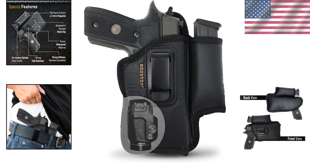 Right-Handed IWB Eco Leather Holster with Mag Pouch – Fits Glock, Beretta & More ‹ › ‹ › ‹ › ‹ › ‹ › ‹ › ‹ › ‹ › ‹ › Right-Handed IWB Eco Leather Holster with Mag Pouch Designed with the modern concealed carrier in mind, our Right-Handed IWB Eco Leather Holster offers the ultimate blend of safety, comfort, and functionality. This premium holster is compatible with an array of firearms, including top models from renowned brands such as Glock, Beretta, and SIG Sauer. Features: **Strong Metal Clip** for maximum retention and secure fit. **Double Stitched** for enhanced strength and durability, ensuring it withstands daily use. Safe, easy, and comfortable to use for concealment, ideal for everyday carry. Compatible with most full-size guns with laser, including: SIG SAUER P250 Sub Compact SIG P320 Sub Compact SIG 224, 229, 229 Legion GLOCK 30 / 30S / 39 BERETTA PX4 Sub Compact Springfield XDM WITH LASER Beretta 92 FS WITH LASER And many more! Benefits: Engineered for comfort with a sleek IWB design perfect for everyday wear. Provides excellent concealment without sacrificing accessibility. Compatible with a wide range of firearms, making it a versatile choice. Eco-friendly leather ensures a stylish appearance while remaining practical. Strong metal clip securely attaches to your waistband or belt. Why Choose Our Right-Handed IWB Eco Leather Holster? This holster combines elegance with functionality, allowing you to carry your firearm confidently and comfortably wherever life takes you. The double stitching and durable materials ensure that you can rely on this holster for years to come, providing both protection for your weapon and peace of mind for you as an owner. Elevate your concealed carry experience with our thoughtfully designed Right-Handed IWB Eco Leather Holster. Order now and enjoy a blend of sophistication and reliable performance that meets your needs! Shipping Free & Fast Shipping - We offer free shipping to most of the USA with a normal delivery time of 3-7 days. However, due to the current situation, additional delivery time (up to 3 weeks) may be required for some items. Alternative Carriers - We may use alternative carriers (e.g. USPS, FedEx, UPS, etc.) to ensure your package arrives safely and on time. Due to the use of multiple carriers, we are unable to provide a tracking number automatically. Handling Time - Orders are processed and shipped within 1-2 business days of receiving cleared payment. Shipping Restrictions - Shipping to Alaska, Hawaii, Puerto Rico, Guam, and other US territories may incur shipping charges or delivery restrictions. Please contact us before ordering, or your order can be refunded/cancelled. State Restrictions - There may be restrictions based on your state of purchase. For example, certain items may not be shipped to California due to state regulations. Contact for Tracking Updates - If you require tracking updates or have any concerns about the delivery of your order, please feel free to contact us, and we will be happy to assist you. Return 30-Day Hassle-Free Returns - We want you to be completely satisfied with your purchase. If you are not, you can return the item within 30 days of receiving it for a full refund or exchange. Easy Return Process - To start a return, simply contact us and we will provide you with a prepaid return shipping label and detailed instructions. Restocking Fee - There are no restocking fees for returns. However, the buyer is responsible for return shipping costs if the return is not due to a seller's error. Refund Processing Time - Refunds will be processed within 5 business days of receiving the returned item in its original condition. Payment We accept all major credit cards, PayPal, and Apple Pay for your convenience. Your payment information is secure and encrypted to ensure a safe and seamless transaction. Please complete your payment within 3 days of purchase to avoid any delays in shipping. Feedback Your feedback is extremely important to us. We strive to provide the best products and customer service possible. If you are satisfied with your purchase, please take a moment to leave us a positive review. If you have any concerns or issues with your order, please contact us before leaving negative feedback. We are committed to resolving any problems and ensuring your satisfaction. Contact Us If you have any questions or concerns, please feel free to reach out to our customer support team. You can contact us through the eBay messaging system. We are available Monday to Friday, 9:00 am to 5:00 pm EST, and we will do our best to respond to your inquiry within 24 hours. Buy it now and enjoy a pleasant shopping experience! UPC: Not Set Model: Not Set Item Height: Not Set Item Length: Not Set Item Weight: 0.08 kg Item Width: Not Set Unit Quantity: 1 For Gun Make: GLOCK,SIG SAUER,BERETTA,RUGER,H&K,SPRINGFIELD,HI-POINT Material: Faux Leather Carry Location: Inside Waistband (IWB) For Gun Type: Pistol Gauge/Caliber: .40 S&W,.45 ACP,9mm Carry Position: 3 o'Clock Attachment Type: Clip Features: Adjustable Straps,Lightweight,Water Resistant,With Clip Cant: Neutral Set Includes: Holster with Mag Pouch Brand: Unbranded Type: Concealment Holster Number of Magazines: 1 Level: Level 1 Sport/Activity: Shooting MPN: Not Set Handedness: Right Color: Black Country/Region of Manufacture: Not Set Manufacturer Warranty: Not Set Unit Type: Unit