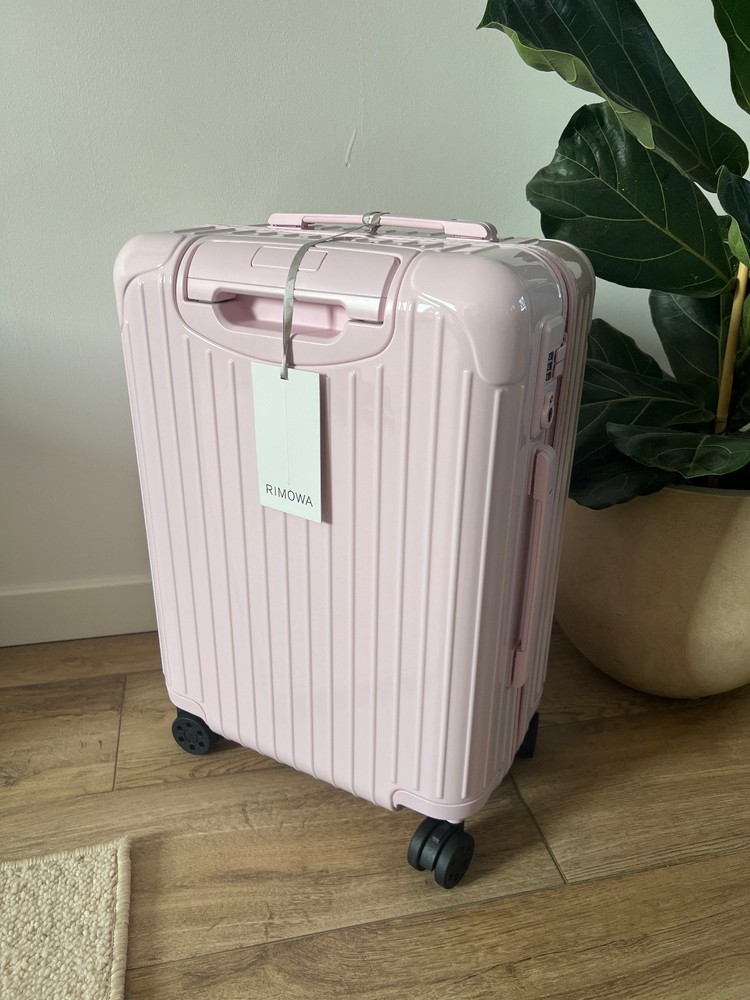 Rimowa Essential Cabin – Ballerina Pink (Limited Edition) Condition: Brand New with Tags (NWT) | Color: Ballerina Pink | Size: Cabin Elevate your travel game with this stunning, highly sought-after Rimowa Essential Cabin in Ballerina Pink . This limited-edition colorway is a favorite among collectors and style enthusiasts, and it is currently sold out worldwide. This suitcase is in pristine, unused condition , still featuring the original tags. Whether you’re a frequent flyer or a weekend traveler, this piece combines Rimowa’s legendary German engineering with a sophisticated, soft aesthetic. Product Highlights Sold Out Worldwide: A rare opportunity to own this iconic pastel shade that is no longer available in retail stores. Pristine Condition: Never used, stored in a smoke-free/pet-free environment. High-End Engineering: Made from high-tech polycarbonate for a lightweight yet incredibly durable shell. Seamless Mobility: Equipped with the Rimowa Multiwheel® System for effortless 360-degree steering. Secure Travel: Features TSA-approved integrated locks for peace of mind during security checks. Specifications Dimensions: Approximately 21.7 x 15.4 x 9.1 inches (standard carry-on size for most airlines). Interior: Features the adjustable Flex Divider to keep your belongings perfectly organized. Handle: Stage-free telescopic handle for custom height adjustment. What’s Included Rimowa Essential Cabin (Ballerina Pink) Original Manufacturer Tags Dust Bag Rimowa Warranty/Instruction Booklet Authenticity Guaranteed: This is an authentic Rimowa product. Please review the photos carefully as they represent the exact item you will receive. Shipping & Handling Shipping: Will be shipped securely in a reinforced box to ensure it arrives in perfect condition.