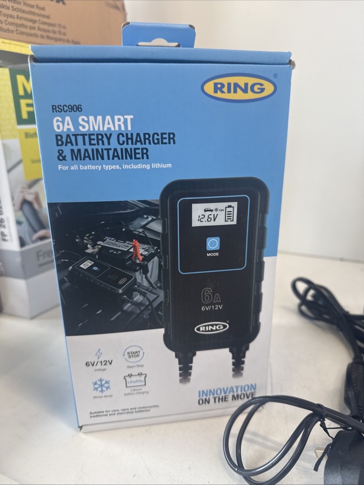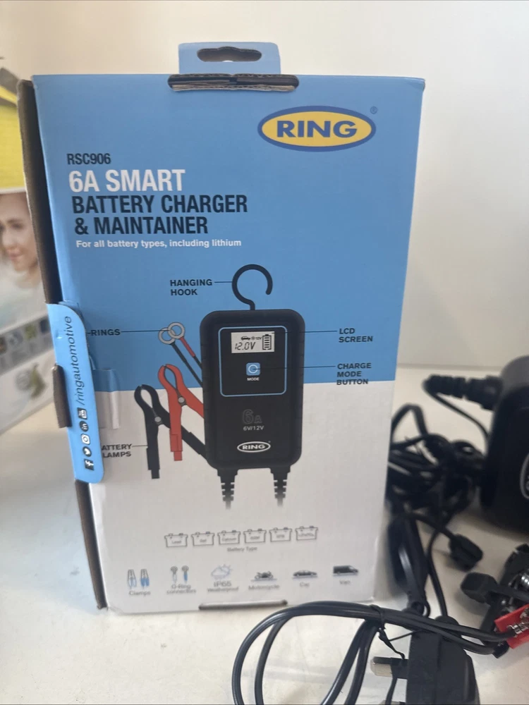 The Ring Automotive SMARTCHARGE 6 is a 6A Smart Car Battery Charger designed for both 6V and 12V batteries. This product, with the model number RSC906, is specifically manufactured for automotive use, catering to car owners who require a reliable and efficient charging solution. The sleek black design adds a modern touch to any vehicle, while the compact dimensions make it easy to transport and store. With its smart technology and high-quality construction from the trusted brand Ring, this battery charger is a practical and essential accessory for any car maintenance routine.