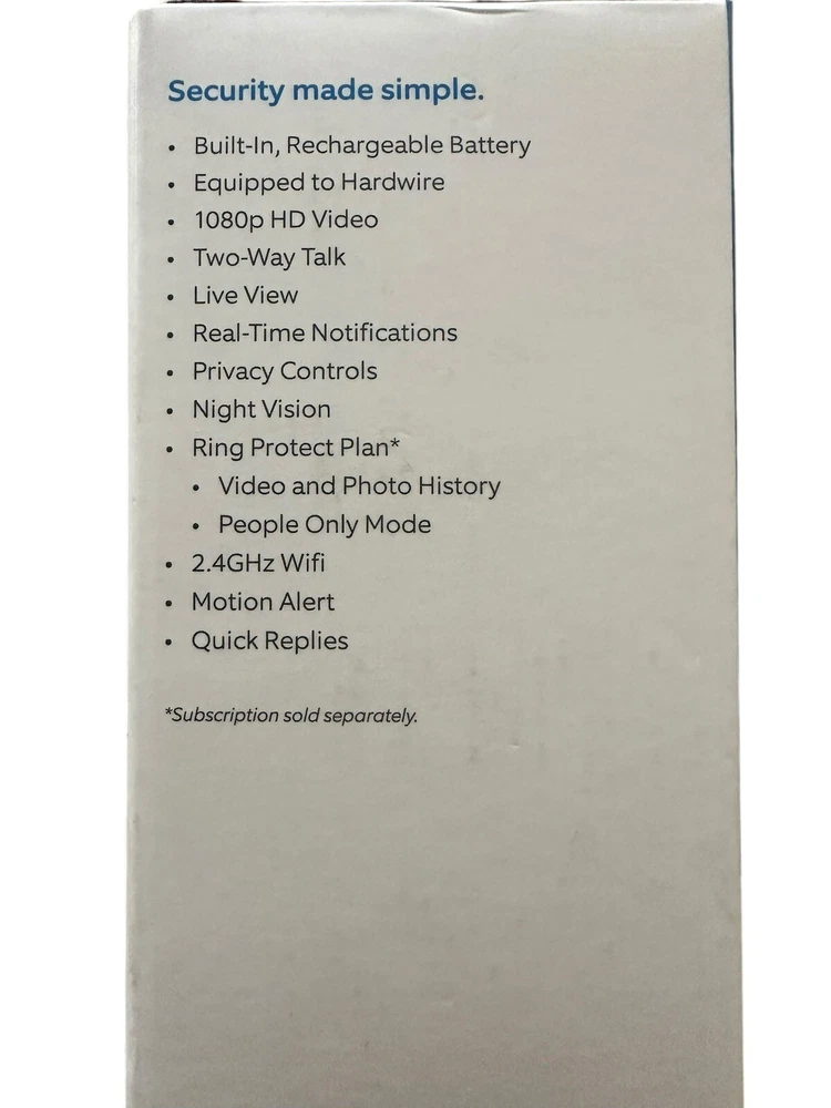 Number of Batteries: 1 Compatible Brand: Ring Year Manufactured: 2020 Item Width: 2.5 in Internet Connectivity: WiFi Item Weight: 0.5 lb Item Length: 1.5 in Chipset/GPU Model: 8VR1S7-0EN0 Battery Included: Yes Personalize: No Items Included: Battery, Mounting Bracket, Screws UPC: 852239005550 Material: Nickel Style: Modern MPN: 8VR1SZSEN0, 8VRASZ-SEN0, XOFGPY8C, 53-023184, 8VR1SZ-SEN0 Button Shape: Round Model: Ring 8VR1SZ-SEN0 Type: Wi-Fi Manufacturer Warranty: NONE Finish: Matte gtin13: 852239005550 Connectivity: Wireless Storage Capacity: Cloud Storage Power Source: Wi-Fi Brand: Ring Color: Satin Nickel Shape: Rectangle Suitable For: Home, School, Shop Chipset Manufacturer: Ring Features: Wi-Fi Connectivity Button Material: Metal