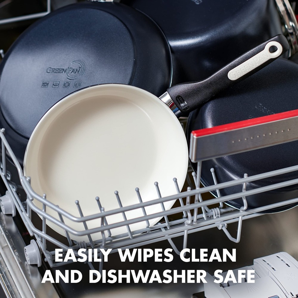 ’s Thermolon healthy ceramic nonstick coating is free of PFAS, PFOA, lead, and cadmium, so it will never release toxic fumes, even if it’s accidentally overheated Tough, diamond-reinforced nonstick coating is incredibly durable Heavy-gauge construction provides excellent heat conduction Oven safe up to 350°F Dishwasher safe for easy cleanup