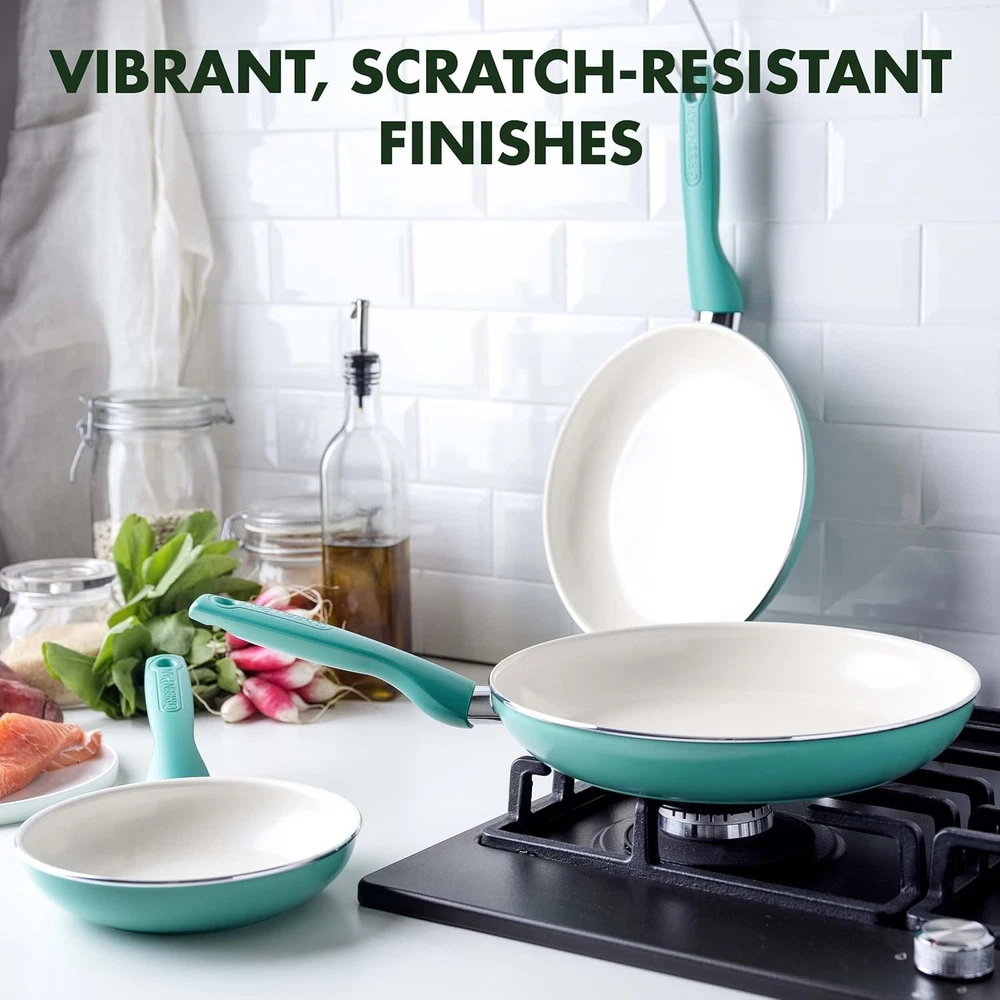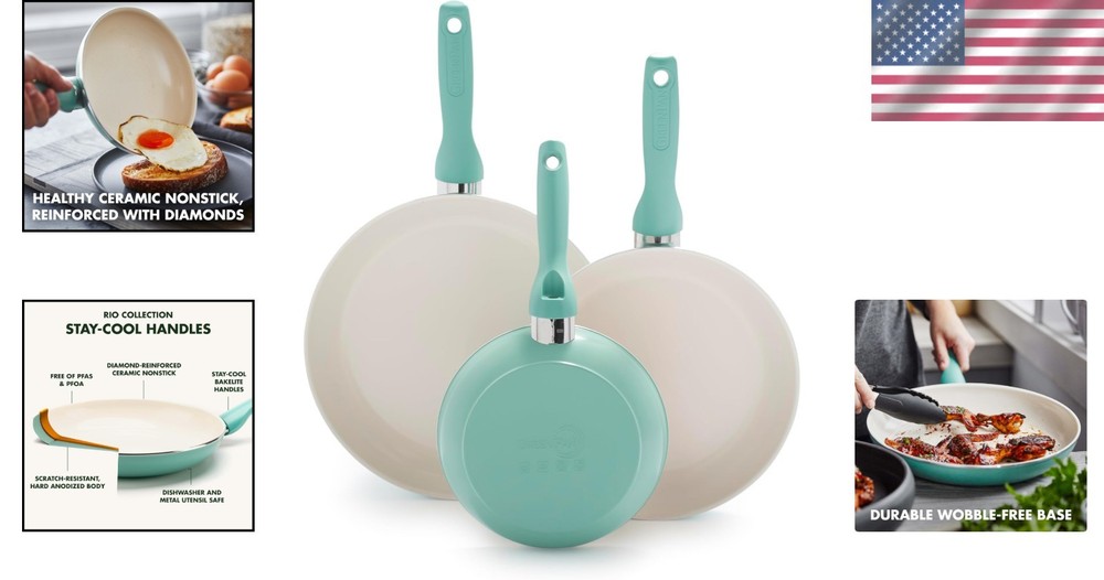 Rio Healthy Ceramic Nonstick Frying Pan Set - 3 Durable Pans (7", 9.5", 11") ‹ › ‹ › ‹ › ‹ › ‹ › ‹ › ‹ › ‹ › ‹ › ‹ › ‹ › Rio Healthy Ceramic Nonstick Frying Pan Set Revitalize your cooking experience with our vibrant Rio Healthy Ceramic Nonstick Frying Pan Set. This elegant collection includes three essential sizes—7", 9.5", and 11"—designed to elevate your culinary creations from breakfast to dinner. Features: Thermolon Healthy Ceramic Nonstick Coating: Free from PFAS, PFOA, lead, and cadmium, ensuring a safe and toxic-free cooking environment. Diamond Reinforcement: The nonstick coating is reinforced with diamonds to provide exceptional durability and peak performance. Heavy-Gauge Construction: Achieve excellent heat conduction for evenly cooked meals every time. Cool Bakelite Handles: Designed to stay cool to the touch, allowing for a firm yet relaxed grip as you cook. Easy Maintenance: Dishwasher safe for effortless cleanup, though hand washing is recommended to maintain longevity. Oven Safe: Each pan is capable of withstanding oven temperatures up to 350°F. Benefits: Healthy cooking with none of the toxins often found in traditional cookware. Versatile sizes perfect for a variety of culinary tasks. Enhanced durability ensures long-lasting performance, saving you money over time. Brighten up your kitchen with the striking colors of the Rio collection. Why Choose the Rio Frying Pan Set? Transform your cooking routine with our Rio Healthy Ceramic Nonstick Frying Pan Set. This thoughtfully crafted set is not just about functionality—it's about enhancing your culinary experience while keeping your kitchen safe and stylish. With its innovative, health-conscious ceramic nonstick coating and stunning design, this set is the ideal choice for home cooks who crave both quality and beauty in their kitchen. Don't compromise on your health or your cooking—choose the Rio Healthy Ceramic Nonstick Frying Pan Set now and enjoy the perfect blend of performance and elegance in your kitchen! Shipping Free & Fast Shipping - We offer free shipping to most of the USA with a normal delivery time of 3-7 days. However, due to the current situation, additional delivery time (up to 3 weeks) may be required for some items. Alternative Carriers - We may use alternative carriers (e.g. USPS, FedEx, UPS, etc.) to ensure your package arrives safely and on time. Due to the use of multiple carriers, we are unable to provide a tracking number automatically. Handling Time - Orders are processed and shipped within 1-2 business days of receiving cleared payment. Shipping Restrictions - Shipping to Alaska, Hawaii, Puerto Rico, Guam, and other US territories may incur shipping charges or delivery restrictions. Please contact us before ordering, or your order can be refunded/cancelled. State Restrictions - There may be restrictions based on your state of purchase. For example, certain items may not be shipped to California due to state regulations. Contact for Tracking Updates - If you require tracking updates or have any concerns about the delivery of your order, please feel free to contact us, and we will be happy to assist you. Return 30-Day Hassle-Free Returns - We want you to be completely satisfied with your purchase. If you are not, you can return the item within 30 days of receiving it for a full refund or exchange. Easy Return Process - To start a return, simply contact us and we will provide you with a prepaid return shipping label and detailed instructions. Restocking Fee - There are no restocking fees for returns. However, the buyer is responsible for return shipping costs if the return is not due to a seller's error. Refund Processing Time - Refunds will be processed within 5 business days of receiving the returned item in its condition. Payment We accept all major credit cards, PayPal, and Apple Pay for your convenience. Your payment information is secure and encrypted to ensure a safe and seamless transaction. Please complete your payment within 3 days of purchase to avoid any delays in shipping. Feedback Your feedback is extremely important to us. We strive to provide the best products and customer service possible. If you are satisfied with your purchase, please take a moment to leave us a positive review. If you have any concerns or issues with your order, please contact us before leaving negative feedback. We are committed to resolving any problems and ensuring your satisfaction. Contact Us If you have any questions or concerns, please feel free to out to our customer support team. You can contact us through the eBay messaging system. We are available Monday to Friday, 9:00 am to 5:00 pm EST, and we will do our best to respond to your inquiry within 24 hours. Buy it now and enjoy a pleasant shopping experience! Unit Quantity: 5.07 pounds Stove Type Compatibility: Gas,Electric Coil,Smooth Surface Non-Induction Set Includes: 7",9.5",11" frypans Material: Aluminum,Ceramic,PFAS Free Nonstick,Bakelite Handles Features: Dishwasher Safe,Non-Stick Type of Oven: Electric,Gas,Oven Type: Frying Pan Surface Coating: Non-Stick Item Diameter: 7 in Color: Turquoise Shape: Round Item Height: 2 Inches Item Depth: 2 in Number of Items in Set: Three-Piece Heat Resistance: 350°F Item Weight: 5.07 pounds
