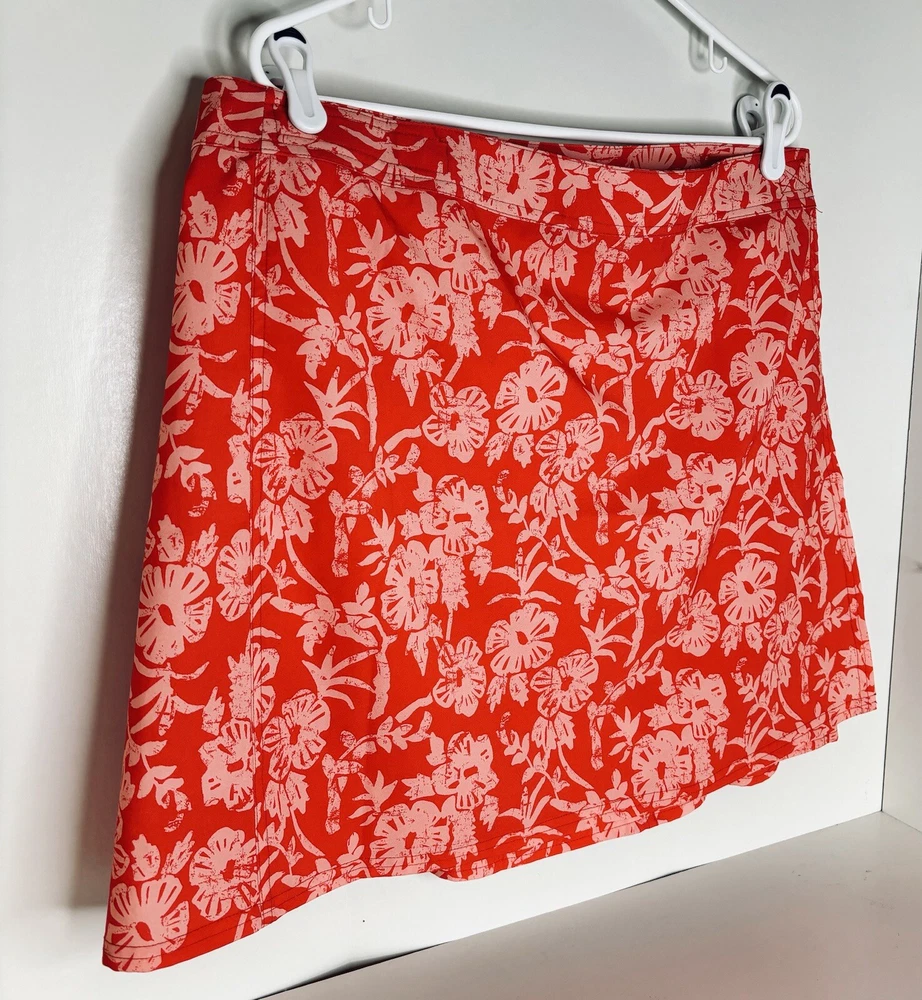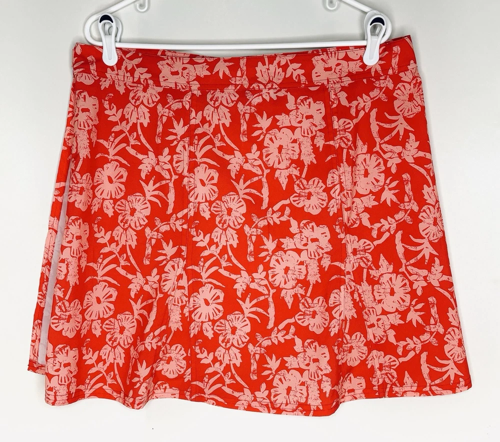 Ripskirt Women's XL Orange Hibiscus Swim Skirt Beach Length 2 Inside Pocket