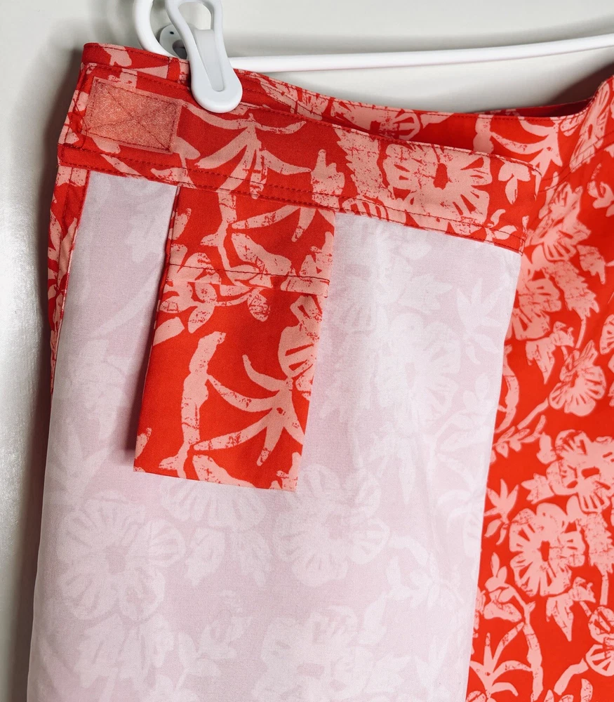 Fabulous Ripskirt swim cover up skirt - size XL - Length 2. Beautiful Orange Hibiscus print. Closes via hook and loop closure, inside pocket as shown. Waist measures 18” across when lying flat as shown (36" waist, adjustable). 18-1/2” from waist to bottom hem. Fabric is 93% polyester, 7% spandex. Excellent condition with no holes, stains or loose hook/loop. Shipped quickly via USPS mail with tracking provided from a non-smoking home.