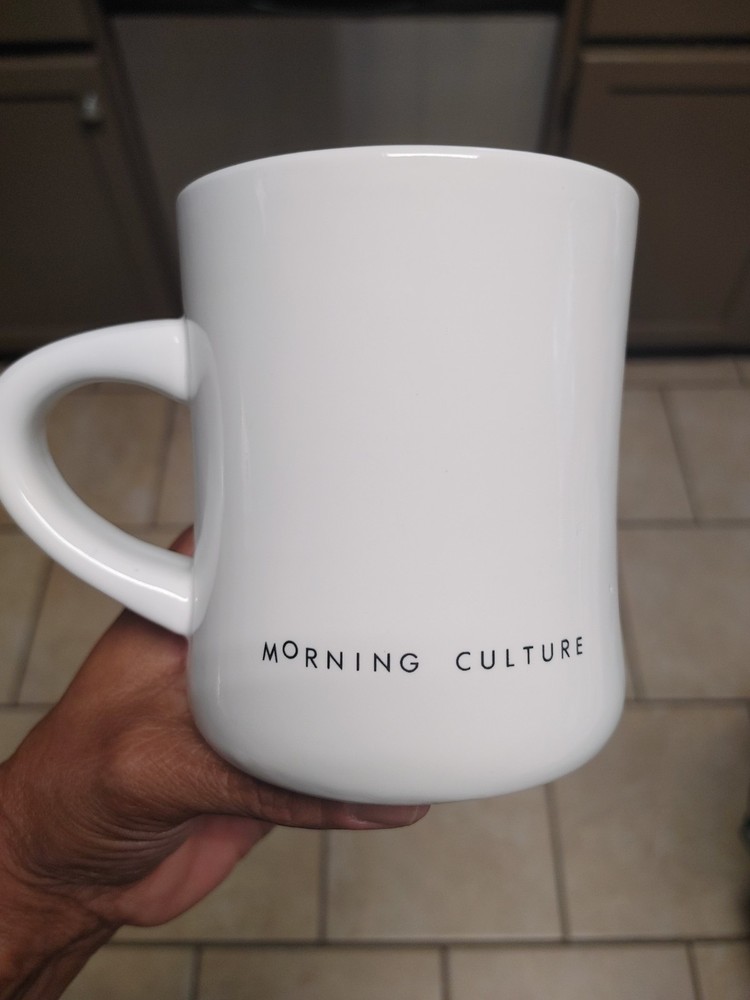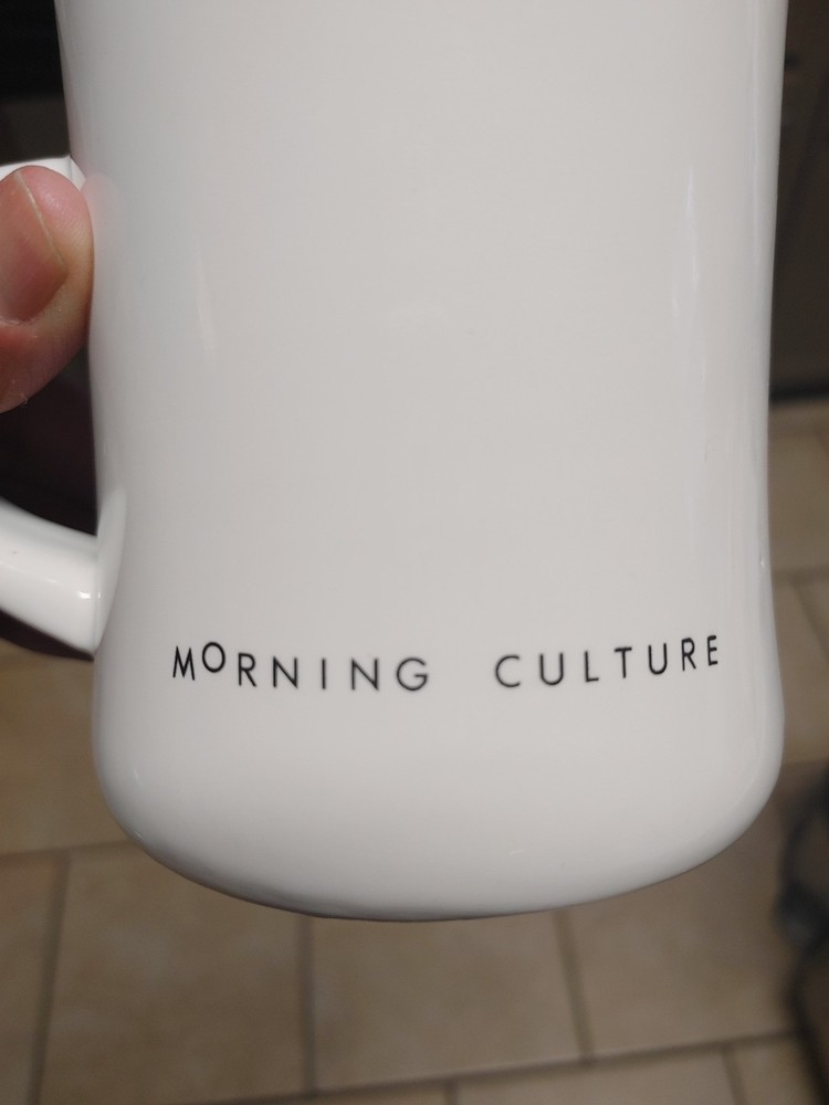 The Rise And Shine Morning Culture 12 Oz. Coffee Mug is a white ceramic mug featuring an embossed design of letters, numbers, and words related to food and drink. With a contemporary style and a capacity of 12 fl oz, this coffee mug is suitable for both hot and cold beverages. Perfect for all occasions, this round mug is ideal for teens and unisex adults looking to add a touch of fun and curiosity to their daily routine. Made with ceramic and porcelain materials, this original coffee mug tea cup from the brand Morning Culture is a must-have for collectors and home enthusiasts.