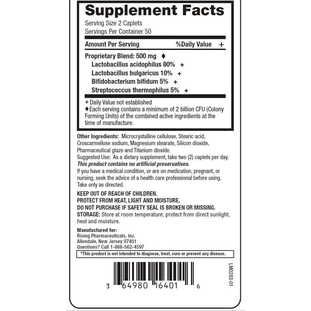 RISA-BID CAPLETS ***RIS Size: 100 Probiotic Supplement Lacobacillus Acidophilus 500 MG Read all product labels before taking this product.