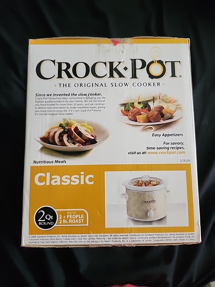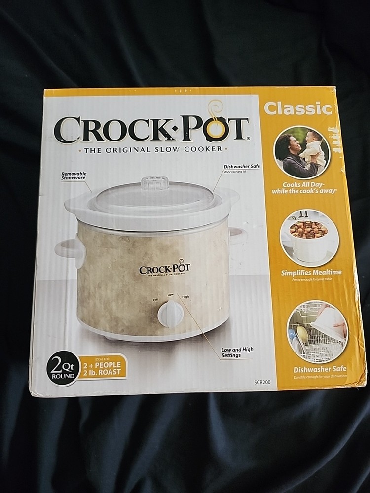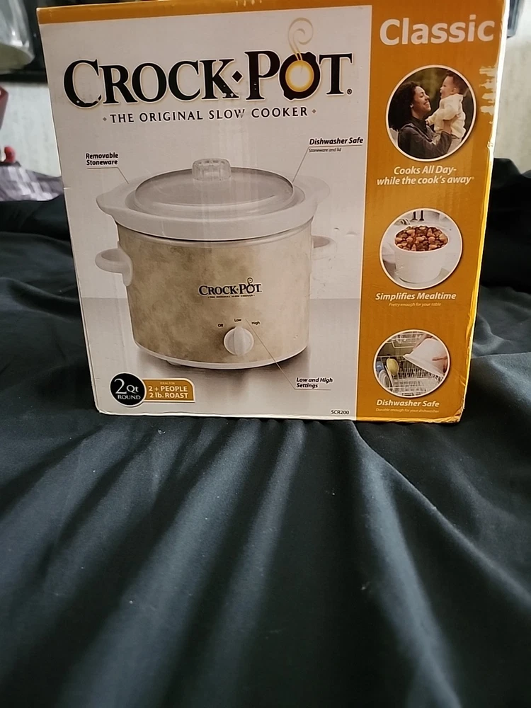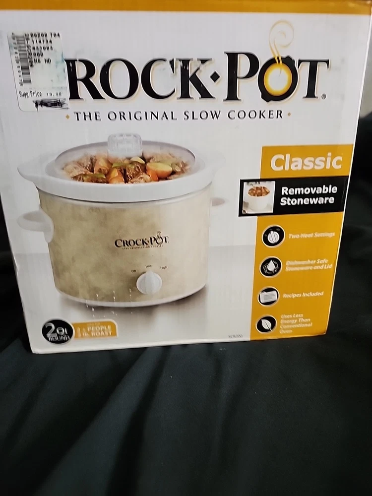 Elevate your cooking experience with the Rival 2 Qt Quart Small Crock Pot Stoneware Slow Cooker, Model SCR200. Perfect for crafting hearty stews, succulent roasts, or even baking, this versatile appliance is an essential addition to any kitchen. Its beige stoneware base paired with a white ceramic insert offers a warm, inviting touch to your countertop. This electric slow cooker features a 100 W power rating and two settings/programs for easy operation. The 2-quart capacity is ideal for serving-sized portions, and the 7-1/2" height and 10" width with handles make it a space-saving and convenient choice for any cooking space. Embrace the simplicity of slow cooking with this reliable and user-friendly Rival slow cooker. This Crock Pot is brand-new, never opened and fully sealed.