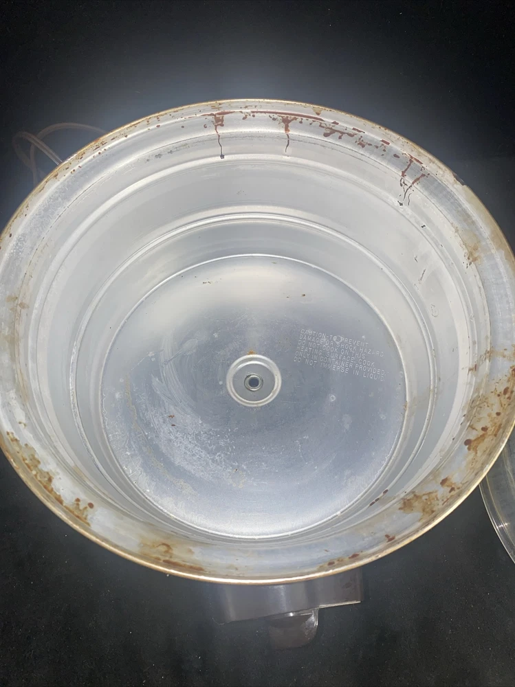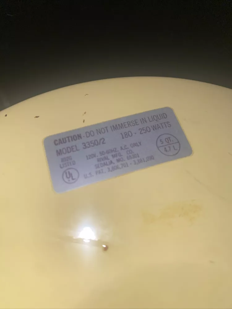 Introducing the Rival 3350 5 Quart Crock-Pot Slow Cooker, a versatile and reliable kitchen appliance perfect for cooking up delicious meals. This slow cooker features a removable stoneware pot, lid, and base, making it easy to use and clean. With a power of 250 W and 2 settings/programs, you can cook your meals to perfection. The Crock-Pot brand is known for its quality and durability, and this model is no exception. Its 5 qt capacity allows you to cook larger meals, while its yellow color adds a pop of fun to your kitchen. This slow cooker is perfect for those who enjoy home-cooked meals without the hassle. Has staining/ residue/ scratching/ wear to finish. Lid is hazy and has name scratched in handle. Still works perfectly