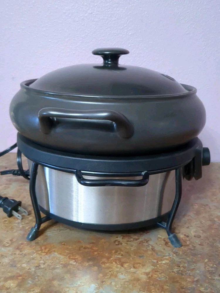 This Crock Pot VersaWare Rival Slow Cooker is a perfect addition to your kitchen. With a 5 qt capacity, it can cook enough food for your family and friends. The slow cooker is made of stoneware, stainless steel, and ABS plastic. It has three settings/programs, which are low, high, and warm. The slow cooker comes with a pot, lid, and adapter. It is electric-powered and has an attractive brown finish. The cooker is easy to clean and has an automatic keep warm function. It is a great choice for those who love to cook and want to make delicious meals for their loved ones.