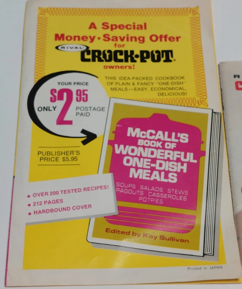 Rival Crock Pot Slow Cooker Cookbook Booklet Model 3500 Paperback Crockpot