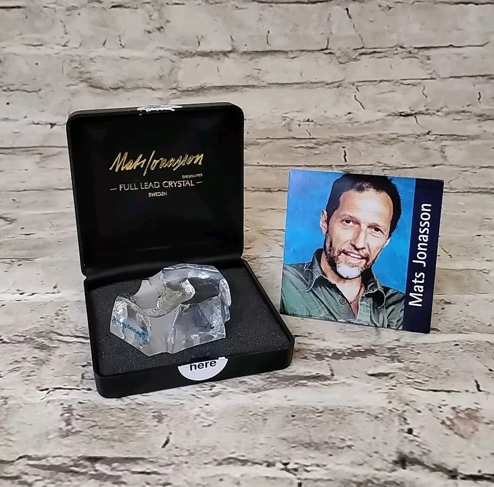 This stunning sculpture by Mats Jonasson features a beautifully crafted river otter etched from clear crystal glass. The attention to detail in this piece is truly impressive, making it a wonderful addition to any art glass collection. Hand-made and signed by the artist, this contemporary original is a unique and exquisite hand-etched glass sculpture that captures the essence of the animal subject. The sculpture is produced using an etched glassmaking technique and is perfect for those who appreciate the beauty of art glass. Add this exquisite piece to your collection today!