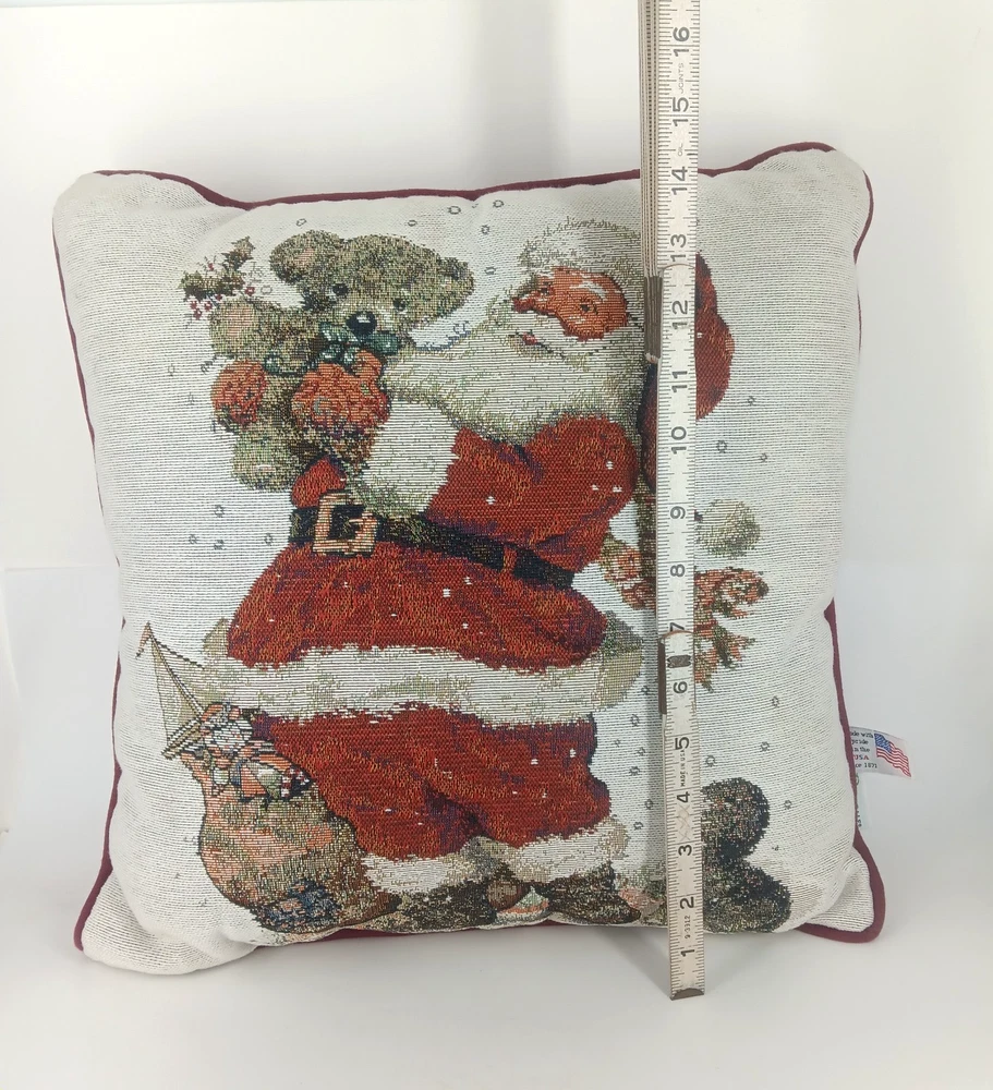 WE APPRECIATE OUR CUSTOMERS THANK YOU FOR SHOPPING WITH US!! Riverdale Santa Pillow Toys Snow Christmas Vintage Tapestry Red 16 in. USA The Riverdale Santa Pillow Toy is a 16-inch square throw pillow featuring a vintage tapestry design with a Santa Claus character, perfect for Christmas decor. Made from a cotton blend material, this multicolor pillow is suitable for adults and can be placed in any room, living room, or den. The traditional style and brand of Riverdale add a festive touch to your holiday home decor. *Please look at pictures as they are part of the description/details. *Good Preowned Condition *Thanks for looking! Please remember items listed as vintage or used will typically show age appropriate wear. I have provided lots of photos for you to see the general condition of each item. If you would like any further photos or information, please contact me and I will be happy to try and help. I do my best to describe items accurately. Pictures are considered part of the description. Cameras and/or computers can sometimes slightly alter colors. Any measurements should be considered approximate. If you need an exact measurement, please ask. Terms and Conditions : Once a purchase has been made, it is legally binding contract. Payments: Payment is due when purchase is made, Thank you for your prompt payment. *If payment is not received within 4 days of purchase, then a Non-Paying Buyer Dispute will be filed, and eBay may mark it against your account. SHIPPING: We ship daily (Mon-Fri not to include holidays) and will ship within two business day of receiving payment! I do accept returns if you are unhappy with your item for any reason. I ask that it be returned in the original condition you received it in. I take pride in shipping items carefully. However, if an item arrives damaged, please contact me immediately. All shipping materials (box, poly bag, bubble wrap, paper, etc.) must be kept, as well as it is necessary to take 7 pictures to document exterior damage of the box, as well as the interior damage of the item(s) that was purchased. This documentation is required to file a damage claim with both USPS and UPS. Upon Receiving : If you are satisfied with your product(s), please leave some positive feedback. *We love hearing that you have received your purchase(s), and are content, delighted, and untroubled. *Once you receive your purchase(s), please inspect them for any damage during transit. Report any damage within 24hrs via eBay e-mail. Return Policy : You may return unworn, unwashed merchandise in its original condition with all tags attached. If you bought a brand-new item, it MUST be returned brand new (Sealed and Any returns MUST be sent back to us complete and in the same condition as delivered to you Unopened). Items must be in new or original condition (free of odor, markings etc.) and ready for resale. Any serial or product numbers must match the purchased item for refund. PLEASE NOTE that shipping will not be refunded . Upon time of purchase, you are agreeing to this return policy. CHECKOUT: Please make sure that your address on file with eBay is complete and correct as we must use the address you have with eBay. *If you have any questions about your purchase, delivery, or a possible product return; Please contact us immediately and directly through your eBay accounts message center! *We are Eco-Friendly, leaving the lightest possible impact on our environment! Whenever possible we will reuse packing material to aid with our Eco goals. Customer service and feedback: If you have any questions about your purchase, delivery, or a possible product return; Please contact us immediately and directly through your eBay account message center! Your satisfaction is our top priority! Our goal is to earn your 5-star 100% feedback. Thank You for buying from us!