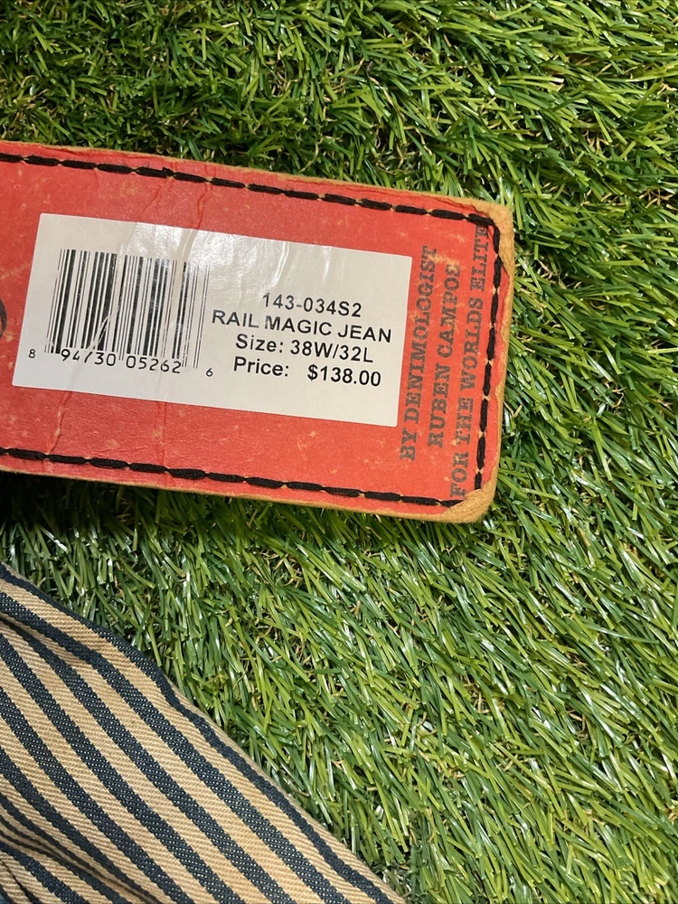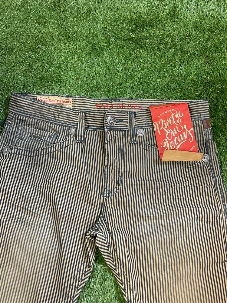 Color: Blue Brand: Rivet De Cru Jeans Waist Size: 34 in Fit: Relaxed Pattern: Striped Size: 38 Size Type: Regular Style: Relaxed Fit Straight Leg Type: Jeans Fabric Type: Denim Inseam: 32 in Department: Men