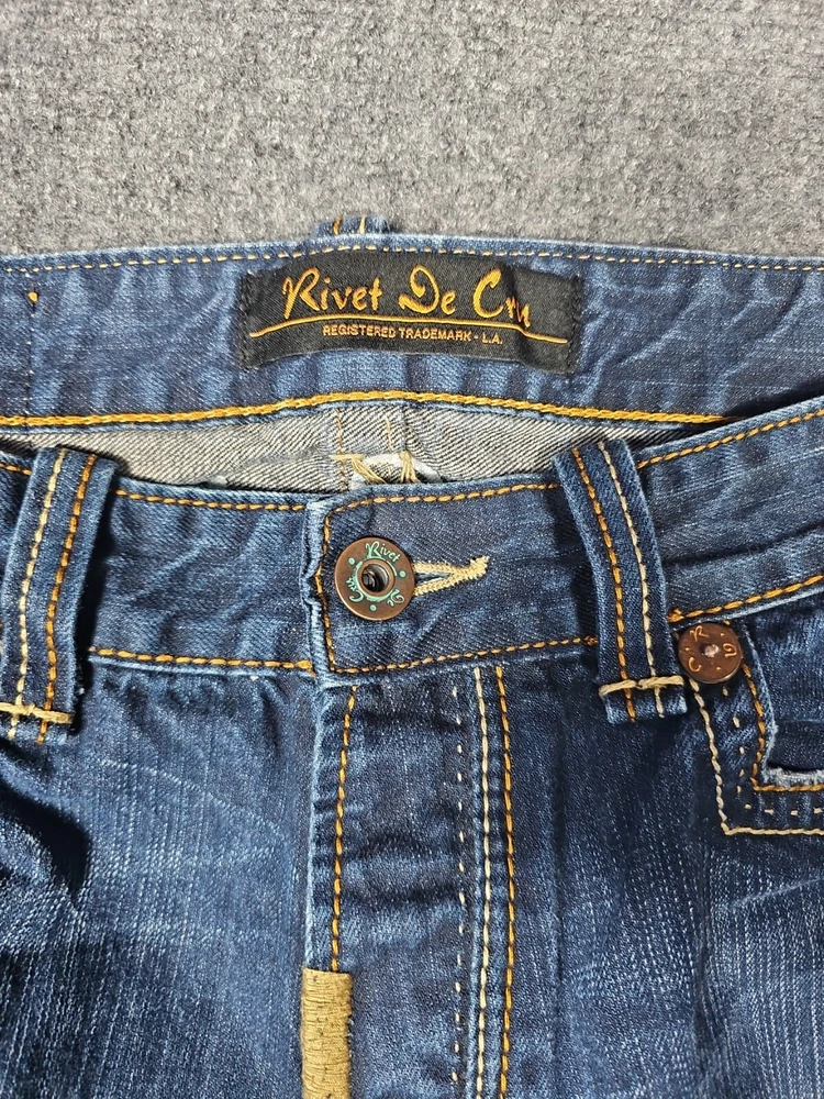 Elevate your denim game with these stylish Rivet De Cru Jeans. Crafted with a relaxed fit, these straight-cut jeans feature a distressed design that adds a touch of edgy detail to your outfit. The blue color and regular size make these jeans a versatile addition to any wardrobe, perfect for casual outings or a night out. These men's jeans come in size 36 with a waist size of 37 inches and an inseam of 31 inches. The buttonfly closure adds a classic touch to the design, while the features such as distressed and straight cut provide a comfortable fit. Ideal for any fashion-savvy man, these Rivet De Cru Jeans are a must-have for any denim collection. Please see pictures for details. Please see photos above for all measurements. Our items are all carefully examined, measured, photographed and stored in a smoke free environment. - We do our best to describe accurately and measure approximately at the time of listing, but just in case, we offer 30 day free returns on unused/unworn items. - 100% authenticity guaranteed. This item will ship out via USPS Mail with a tracking number for confirmation. Items are shipped out everyday Monday - Friday except Holidays. Please feel free to ask any questions you may have.