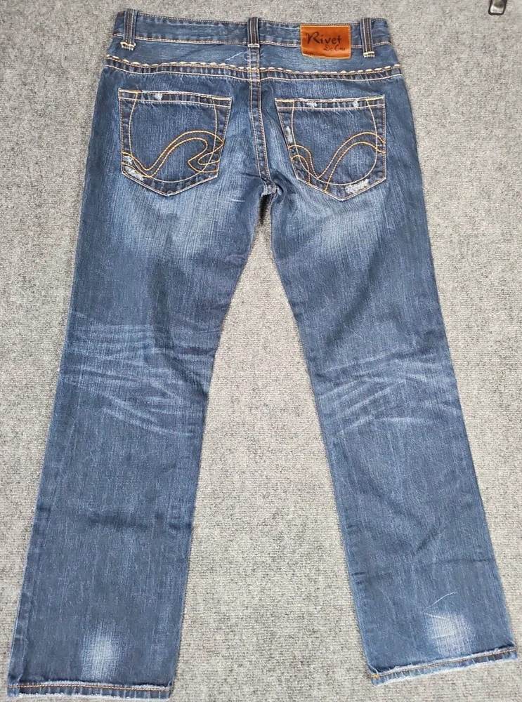 Size Type: Regular Size: 36 Brand: Rivet De Cru Jeans Color: Blue Department: Men Fit: Relaxed Inseam: 31 in Type: Jeans Style: Straight Features: Distressed Waist Size: 37 in