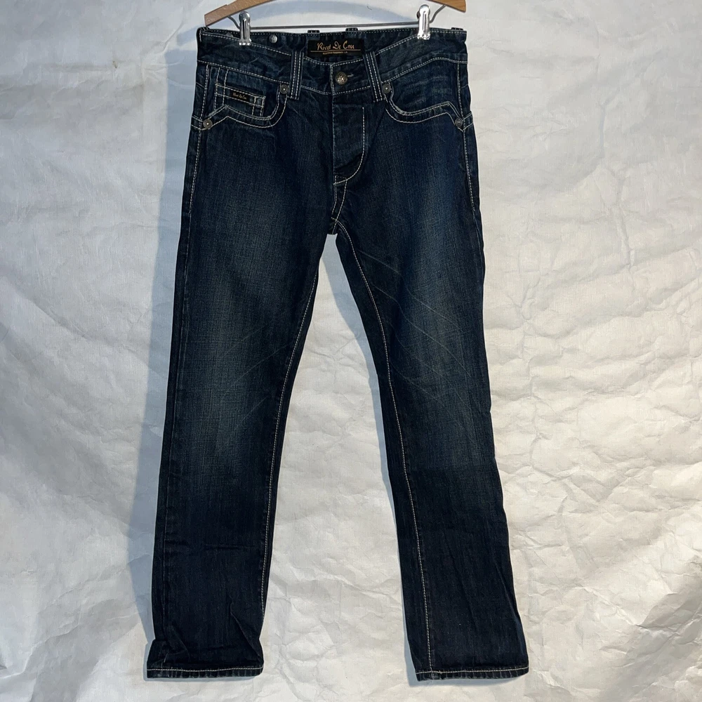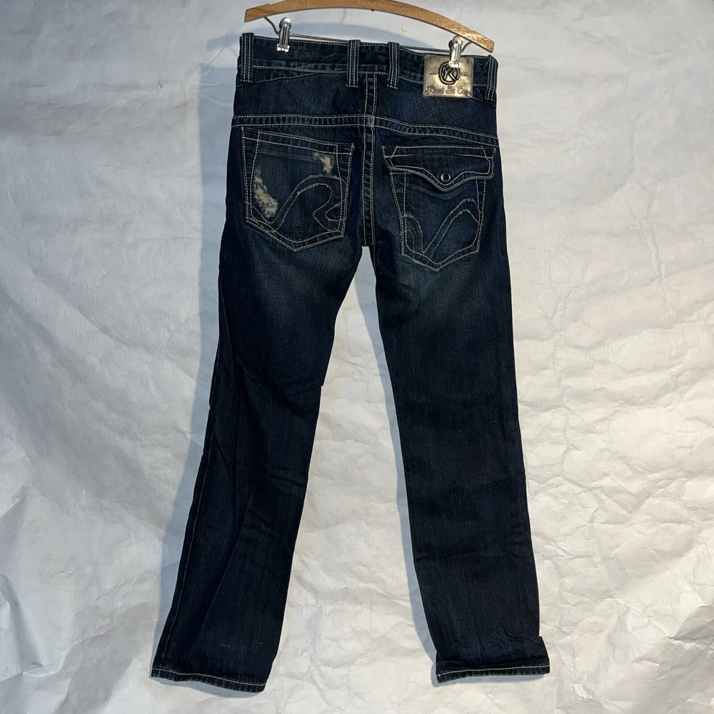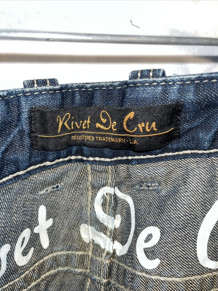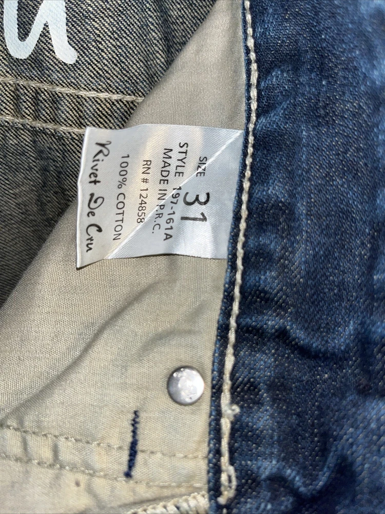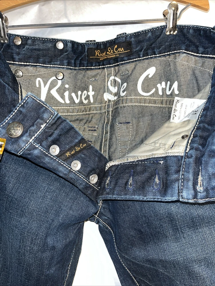 Rivet De Cru Size 31 Dark Denim Jeans Button Fly Distressed Whiskers