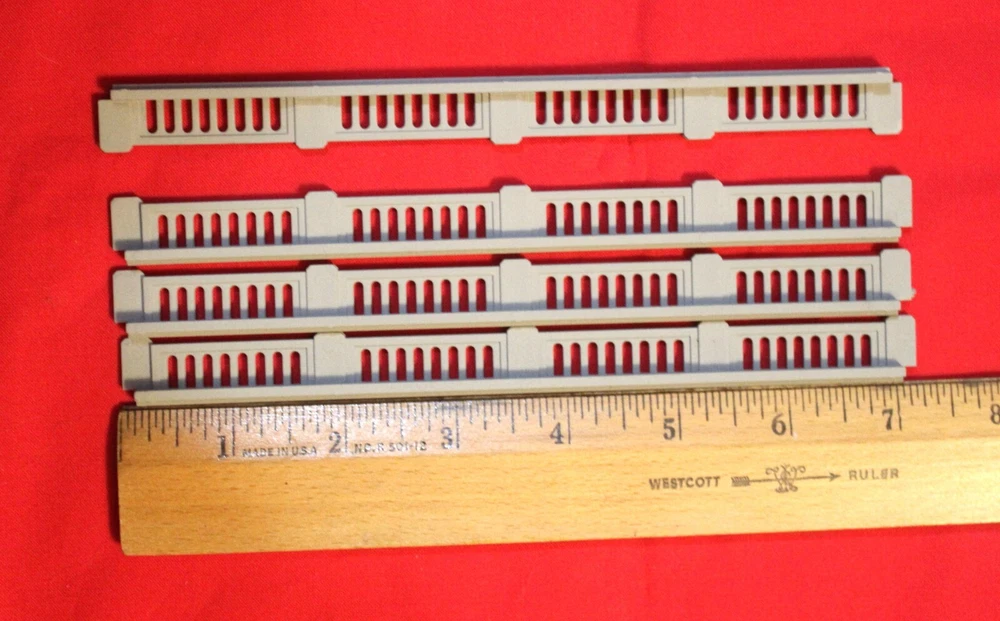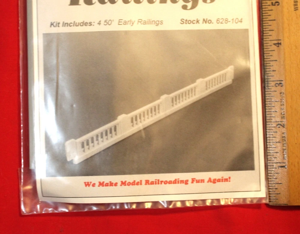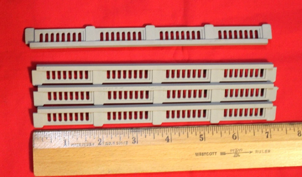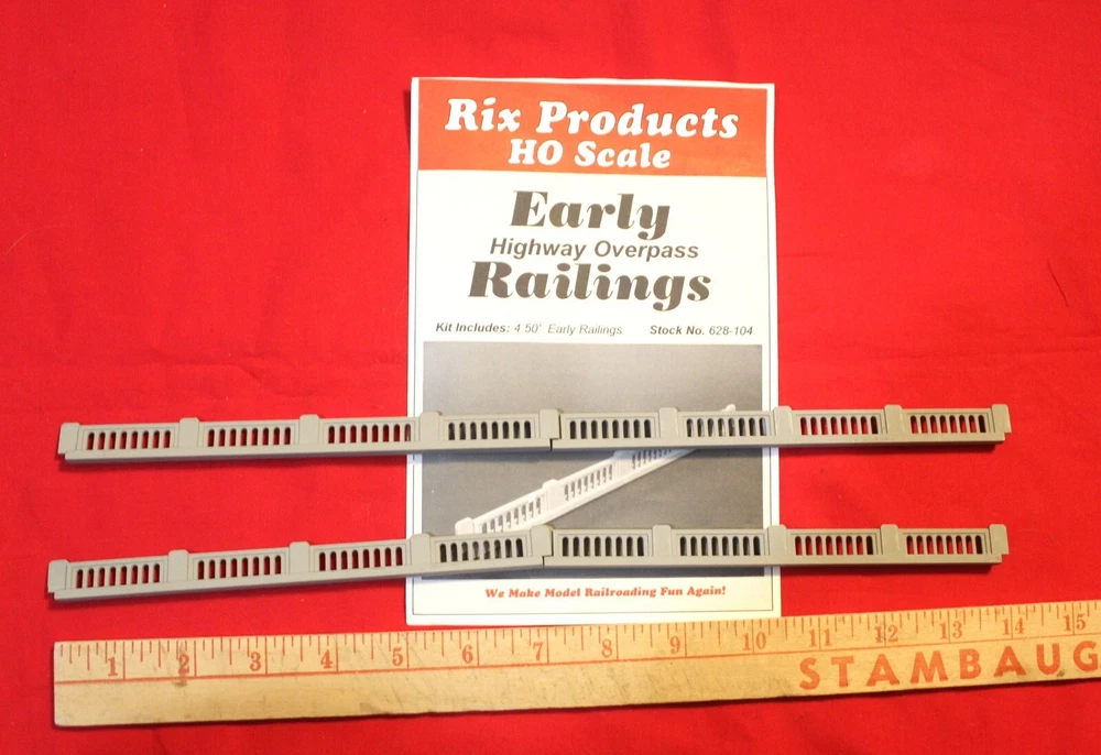 Rix Products Kit - 4 Railings 50' Scale Early 1930's Classic Highway Overpass Style HO Scale This Rix Products Kit is 4 classically designed Highway Overpass Railings that my be found in about every city in the country. This type of early railing was built around the 1930's and is still found along many streets today. This kit contains 4 railings that are 5/8" high and 7' long which is 50 feet in HO Scale. They are injection molded of gray plastic to give them a concrete look. It is also modular so that it is easy to add additional Rix kits to create a larger Highway Overpass and Roadway system. It is in new condition and sealed in a bag. But please view the photos and you be the judge. The item you receive is the one shown in the photographs. I combine shipping to save you money, so please see my other auctions. We strive to be a Five Star Seller Please notify us about any problems . AFTER THE AUCTION There is no need to contact us to arrange payment, we will automatically send you an e-mail after the auction closes. Payment should be received within 3 Days of the close of the auction. SHIPPING Please check out all our of items up for auction, winners of multiple auctions will save with a combined shipping charge. The utmost care is always taken when shipping your items. Thanks & Good Luck on your bidding!