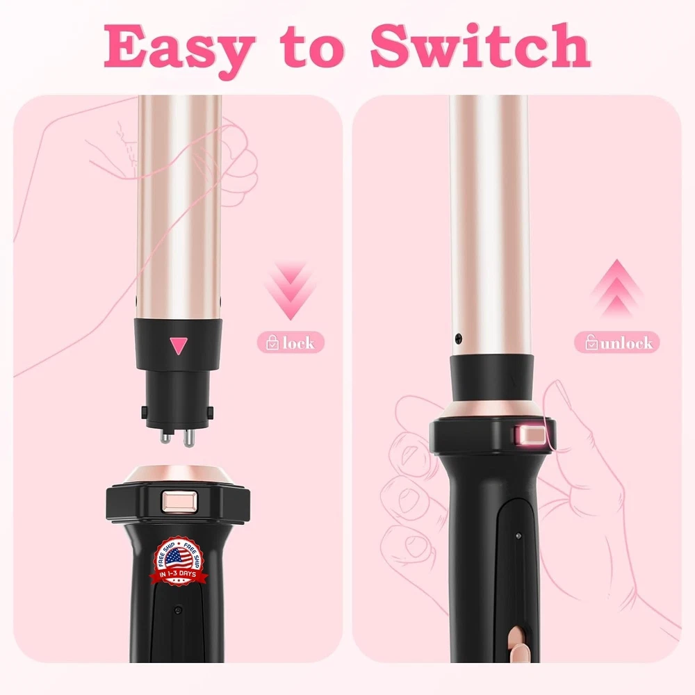 Rizador de pelo 5 en 1 con rizador y plancha para el pelo, Barrels 0.35"-1.25"