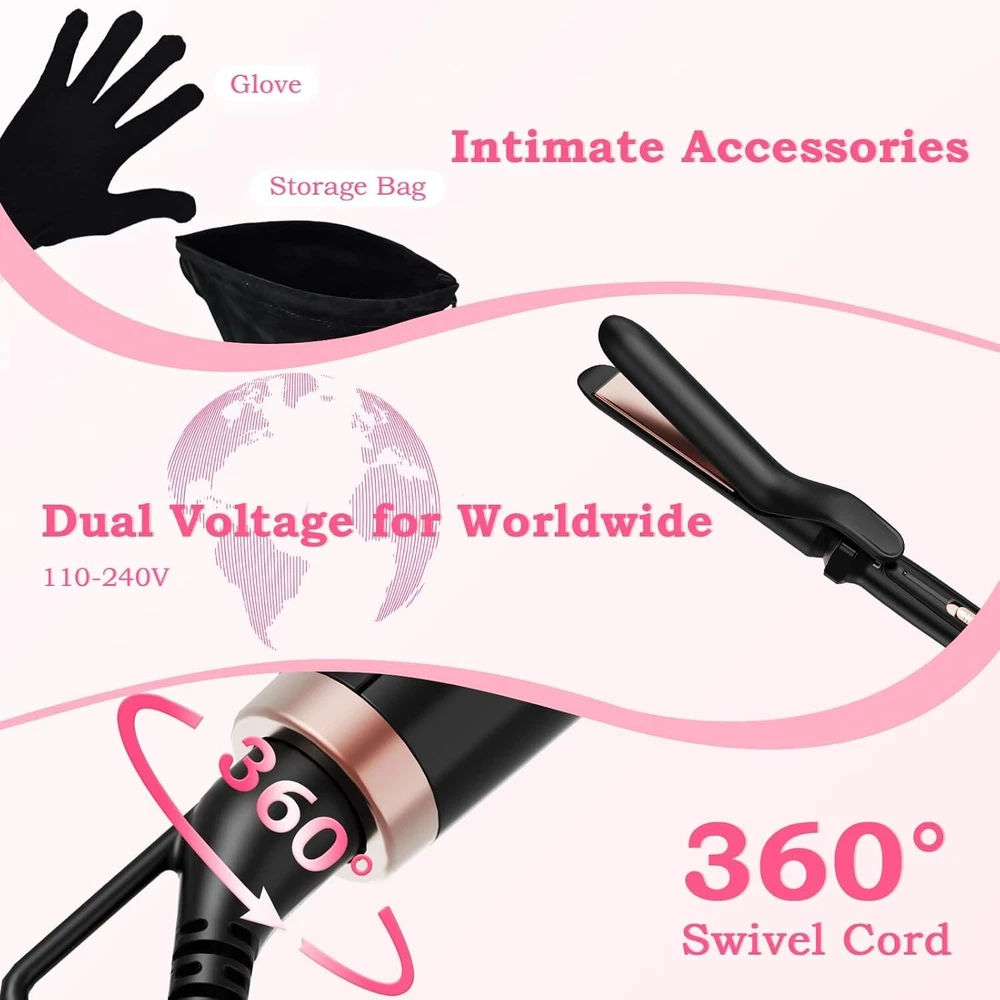 Hair Type: All Hair Types Barrel Size: 0.35"-1.25" UPC: Does Not Apply Type: 5 in 1 Curling Iron Material: Ceramic Size: Travel Size gtin13: Does Not Apply Color: Pink Power Source: Electric Model: Does Not Apply Department: Women Maximum Temperature: 410℉ Heating Plate Material: Ceramic Number of Temperature Settings: 2 Brand: Rizador de pelo Features: Flat Iron Hair Straightener, Instant Heat Up, Dual Voltage