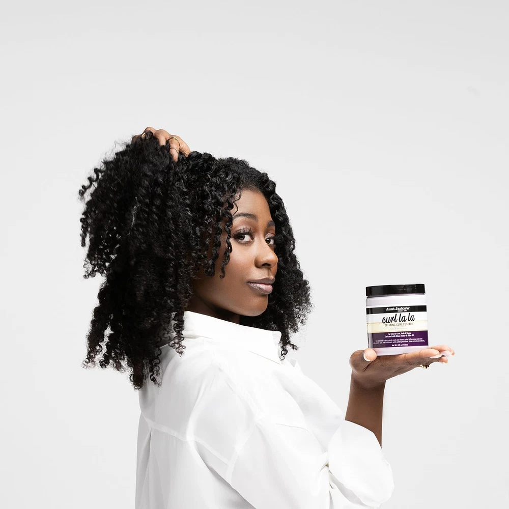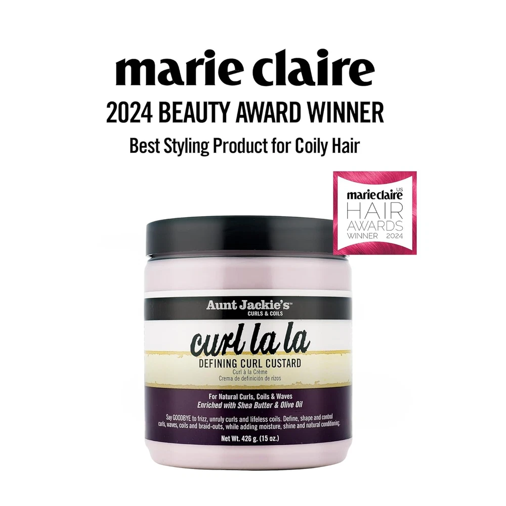 15 oz jar of Aunt Jackie's Curl La La Defining Curl Custard Define, shape and control your hair's curls, waves, coils and braid-outs Add moisture, shine and natural conditioning Enriched with shea butter and olive oil For natural hair curls, coils and waves Great for kiss frizzy, hard-to-tame hair good-bye. The mega-moisture humectants in Curl La La give long-lasting bounce to curls, and shine and definition to spirals and coils. What will it do for my hair? Define your signature look by adding a little or a lot. Whatever your style, rest assure that it will be well-moisturized and soft to the touch, without caking or flaking. Use it as often as needed on wet or dry hair.