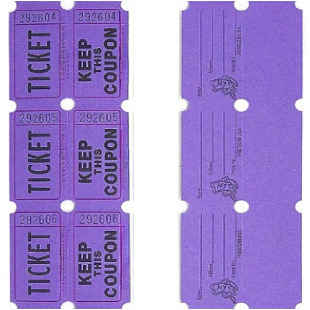 Rmix 100 Purple Raffle Tickets Double Roll 50/50 Carnival Fair Split The Pot ...