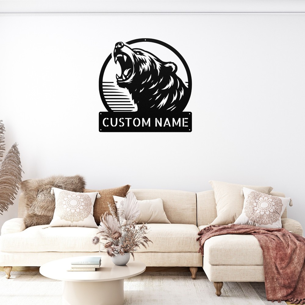 Product Description Custom Roaring Bear Metal Sign Animal Decor Wall Art Gift for Nature Lovers Add a touch of nature to your space with this Custom Roaring Bear Metal Sign ! Made from high-quality 16 gauge metal, this striking animal decor piece is perfect for nature lovers and wildlife enthusiasts. Its durable powder coating ensures it is resistant to dust, weather, and water, making it suitable for both indoor and outdoor use. This personalized sign makes a great gift for Christmas, birthdays, or any special occasion. Whether you want to celebrate your love for wildlife or enhance your own home or office decor, this sign is sure to impress. Key Features: Customizable Design : Personalize with names or initials for a unique touch. High-Quality Material : Crafted from sturdy 16 gauge metal for long-lasting durability. Weather Resistant : Powder-coated finish protects against dust and moisture. Versatile Decor : Perfect for both indoor and outdoor display. Great Gift Idea : Ideal for nature lovers or as a unique home decor piece. Celebrate the majestic beauty of bears with this eye-catching metal sign. It’s not just decor; it’s a tribute to your passion for the great outdoors. Order yours today! Service and Color Choice Our metal signs are designed to be personalized just for you, making them the perfect addition to any space! The default color for our signs is Black , but we also offer a variety of beautiful options including Copper, Gold, White, and Silver . After placing your order, simply contact us with your preferred color choice, and we'll ensure your sign is exactly how you envision it. Let’s create something special together!