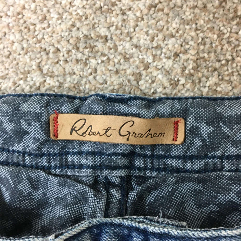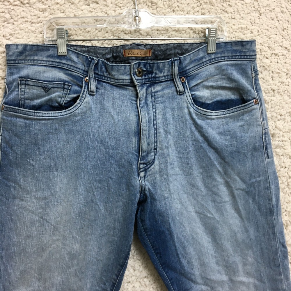 gtin13: Does Not Apply Waist Size: 38 in Pattern: Solid Country/Region of Manufacture: Egypt UPC: Does Not Apply Department: Men Closure: Button, Zip Type: Jeans Rise: Mid (10-12 in) Fabric Type: Denim Fit: Slim Size Type: Regular Inseam: 32 in Material: Cotton, Cotton Blend Size: 36 Theme: Modern Pocket Type: 5-Pocket Design Season: Fall, Spring, Summer, Winter Accents: Button, Logo Style: Straight Fabric Wash: Medium Color: Blue Features: Comfort, Easy Care, Pockets, Stretch Garment Care: Machine Washable Brand: Robert Graham Seller Notes: “Very Good Used Condition. Please, See Pictures for Full Condition and Measurements.”