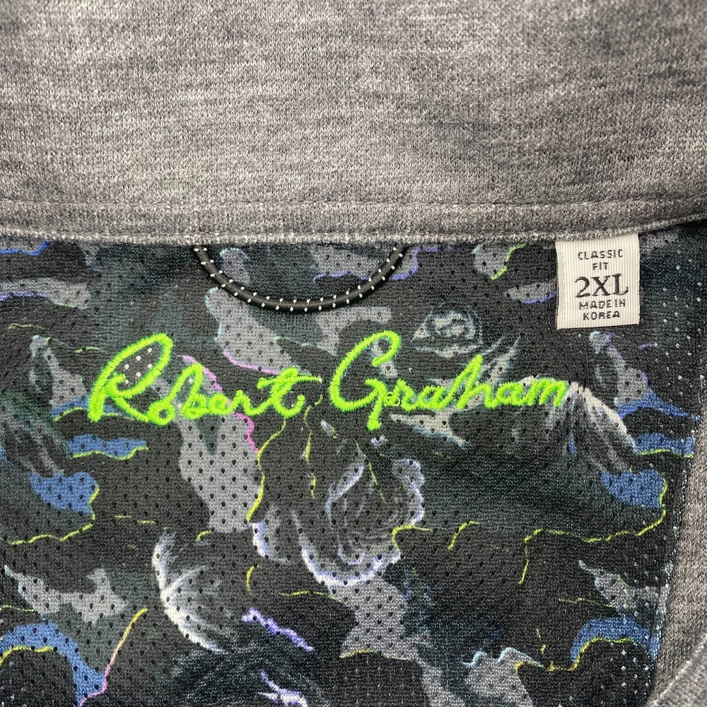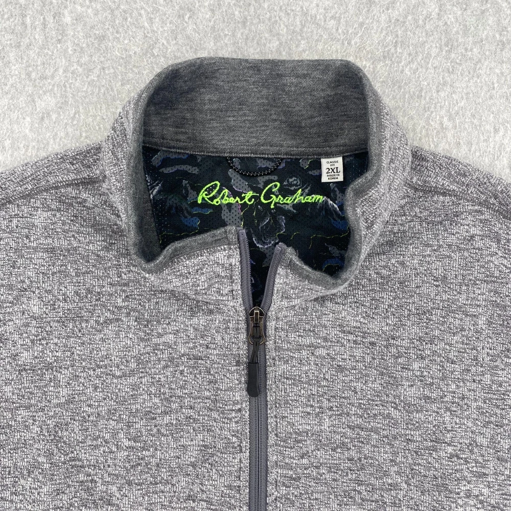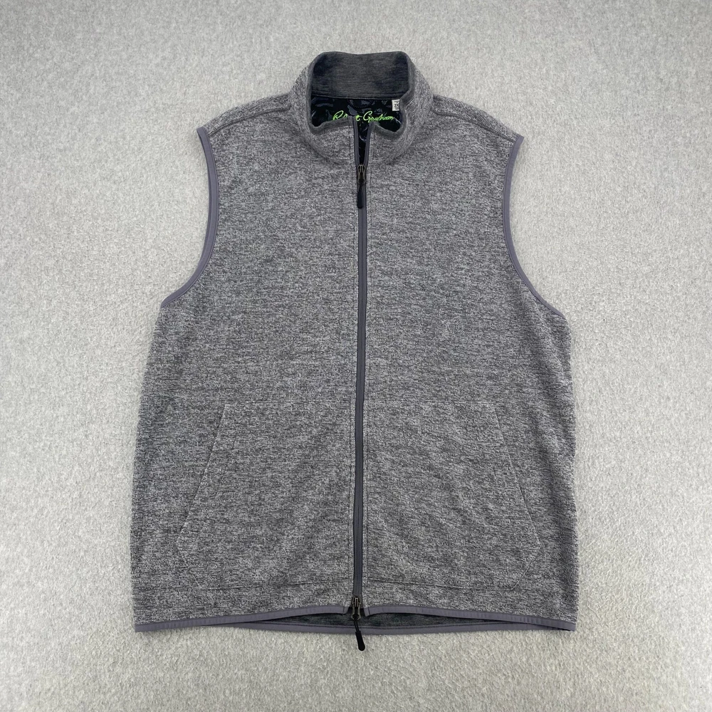 Size: 2XL Brand: Robert Graham Garment Care: Machine Washable Performance/Activity: Cycling, Hunting, Running & Jogging, Walking Type: Vest Fabric Type: Knit Size Type: Regular Product Line: Robert Graham Full Zip Vest Features: Collarless, Full Zip, Heated, Lightweight, Limited Edition, Oversized, Quick Dry Style: Knit Vest Closure: Zip Accents: Logo Outer Shell Material: Polyester Season: Fall, Spring, Summer, Winter Department: Men Theme: Classic, Modern, College Color: Gray Fit: Classic Personalize: No Handmade: No Vintage: No Seller Notes: “Good pre-owned condition” Collar Style: Stand-Up Model: Robert Graham Vest Sweater Pattern: Solid