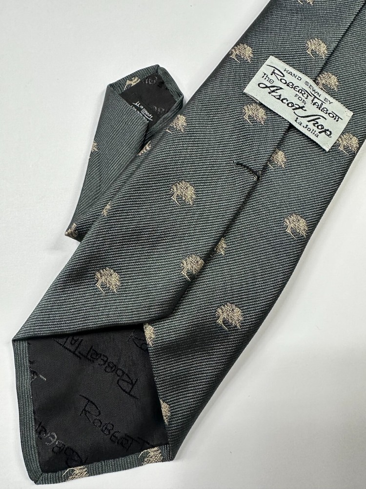 Robert Talbott Grey Silk Tie with Tree Motif Hand Sewn in USA