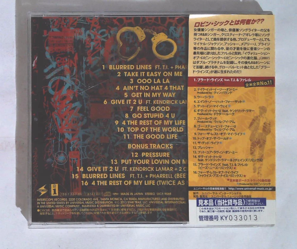 1 Blurred Lines 4:22 2 Take It Easy On Me 3:47 3 Ooo La La 4:38 4 Ain't No Hat 4 That 3:20 5 Get In My Way 3:11 6 Give It 2 U 3:49 7 Feel Good 3:28 8 Go Stupid 4 U 4:29 9 4 The Rest Of My Life 4:56 10 Top Of The World 3:22 11 The Good Life 3:13 Bonus Tracks 12 Pressure 3:46 13 Put Your Lovin' On Me 3:52 14 Give It 2 U (Remix) 4:18 15 Blurred Lines (Bee's Knees Remix) 4:40 16 4 The Rest Of My Life (Twice As Nice Remix) 3:18