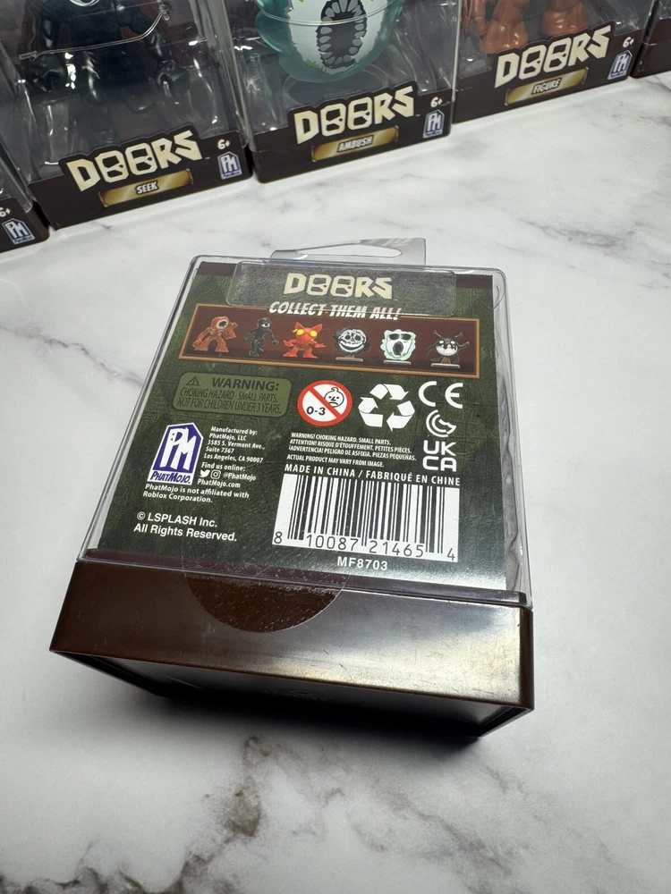 MPN:Does Not ApplyVideo Game Series:RobloxVideo Game Name:Roblox DoorsProduct Line:DoorsUPC:Does Not ApplyModel:Minifigure PackFeatures:In Casegtin13:Does Not ApplyType:MinifigureCustom Bundle:NoCountry/Region of Manufacture:ChinaBrand:PhatmojoCharacter:Ambush, El Gablino, Figure, Rush, Screech, SeekManufacturer Warranty:N/AYear Manufactured:2024