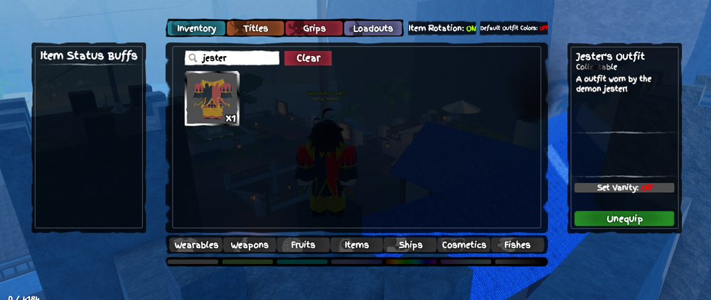 The Jester's Outfit is an collectible item from the game Grand Piece Online(GPO) on Roblox. It is unobtainable, the only way to acquire it is by trading if you have level 425+.