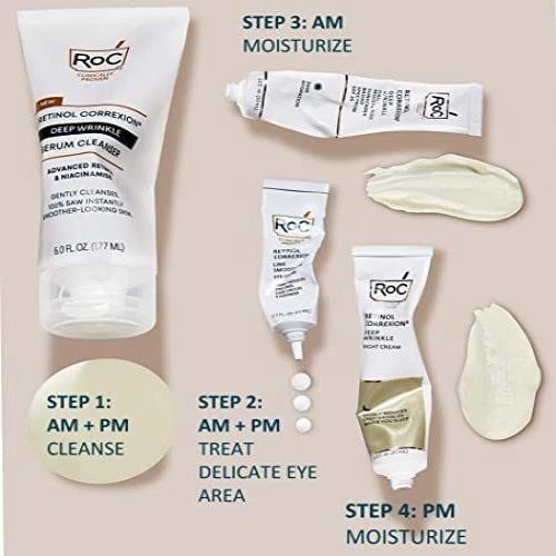 CONTACT US DIRECTLY FOR FREE & PREPAID RETURNS Roc Retinol Correxion Deep Wrinkle Serum Facial Cleanser with Niacinamide for Experience America's #1 Most Awarded Retinol now available in a gentle daily facial cleanser, for skin care that removes dirt, oil, and long-wear makeup. Removes oil, dirt, even long-wear makeup trapped on the surface and enriches skin with Retinol and Niacinamide anti-aging benefits, leaving skin looking healthy and revitalized throughout the day. PROVEN RESULTS: Immediately after use, 100 percent of women said this was the most effective cleanser they have ever tried.100 percent of women saw instantly more radiant, smoother-looking skin; After just 2 weeks, 97 percent of women had an improvement in skin firmness and a visible reduction in fine lines and wrinkles, even deep ones. ANTI-AGING FORMULAS: Whether you're looking for a solution for deep wrinkles, fine lines, dark circles, crow's feet, uneven skin tone or dry skin, we have an anti-aging formula that's right for you, and suitable for sensitive skin. SCIENCE and BEAUTY: We produce a wide array of skin care products and treatments including daily moisturizers with SPF, hyaluronic and niacinamide acids, facial cleansers, vitamin C serums, retinol skin tone and wrinkle regimens and creams for under eyes, neck firming, decollete and much more. Fragrance Free; Soap-Free; Sulfate Free; Paraben-Free; Non-Comedogenic Face Wash; Tested on the face and eye area; Ophthalmologist Tested; Dermatologist Tested Based on a 3rd party study using publicly available data sources from publications and media sources hosting beauty awards since 2010 RoC's serum cleanser removes oil, dirt & long-wear makeup from skin's surface. Made with enriching Retinol & Niacinamide, for a healthy & youthful look. Ophthalmologist tested for use around the eyes. REVIEWS The product came very well packaged. I'm very happy. thank you for everything. Seller strongly recommended. This is great! I definitely recommend! Product looks amazing Delivery was fast. Excellent seller, great communication. I advise everyone