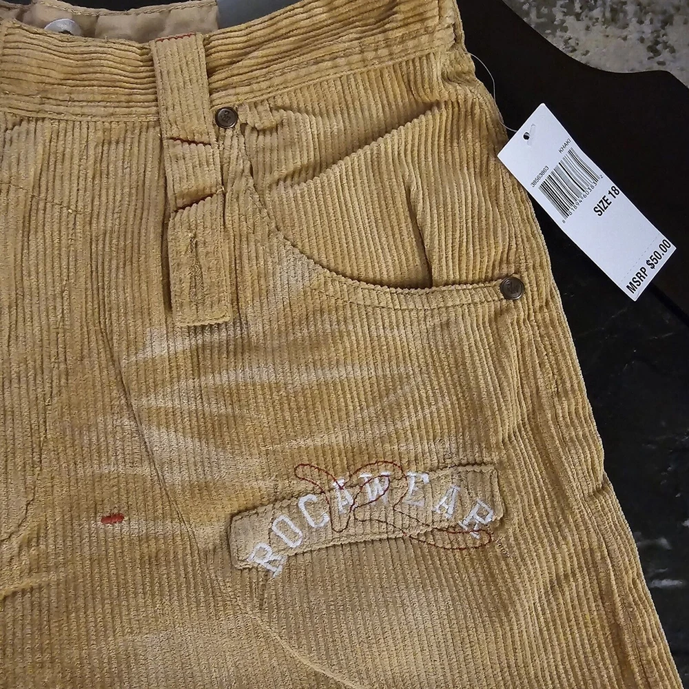 Rocawear Y2K Vintage Corduroy Pants Wide Leg Baggy Skater Jeans Sz 18 Youth (30 waist) Inseam 29 New with tags Wide leg style with gussets, 5 pocket design, embroidered logos I personally purchased these in the early 2000s and they have been stored since
