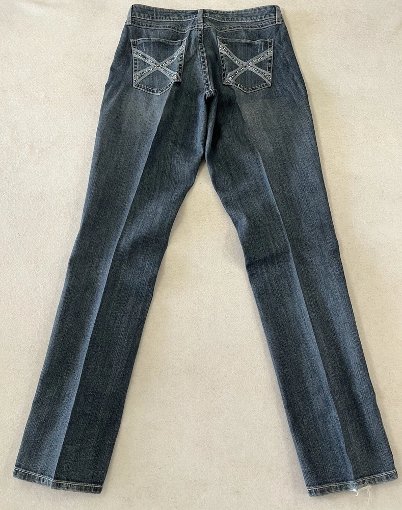 Rock 47 by Wrangler Women's Size 11/12 x 36 Low Rise Blue Jeans Denim Straight!! Good used condition. Fast shipping!! cowgirl, western, boots, equestrian, festival, concert, country, rock