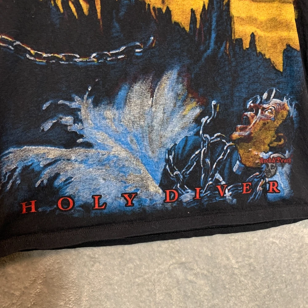 Good Pre Owned condition. There is a small hole on the back near the left shoulder. Please see photos for details. SUPER FAST SHIPPING!!! We ship next business day! If you aren't happy with your purchase we offer 30 day FREE returns. No questions asked! Rock & Death Men Ronnie James Dio Holy Diver Double Sided Graphic Band T Shirt L