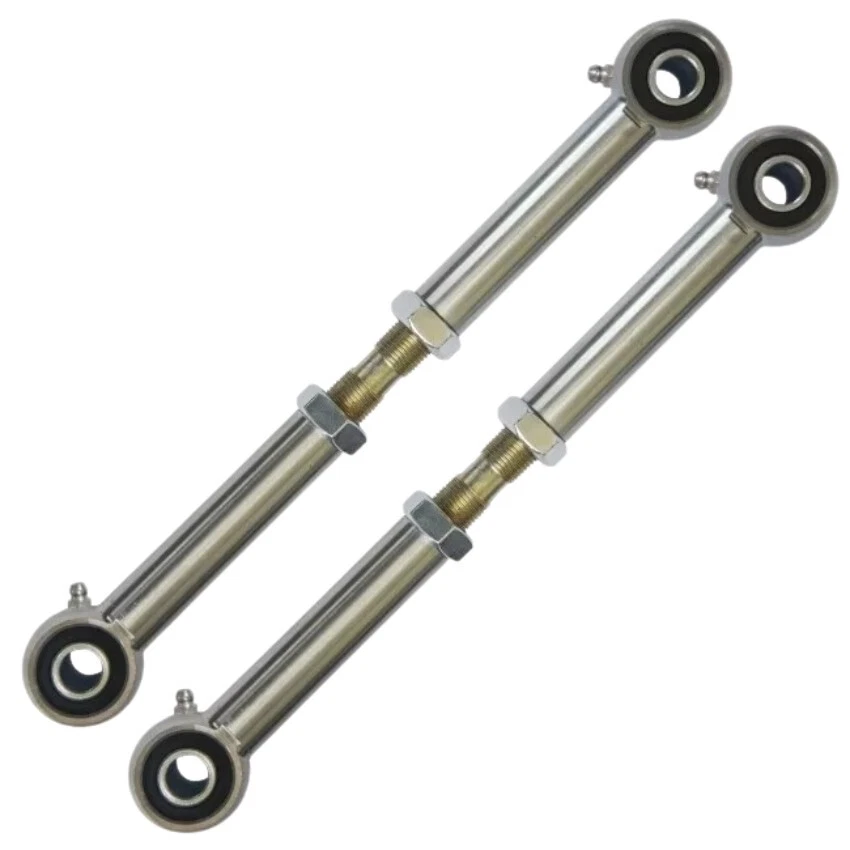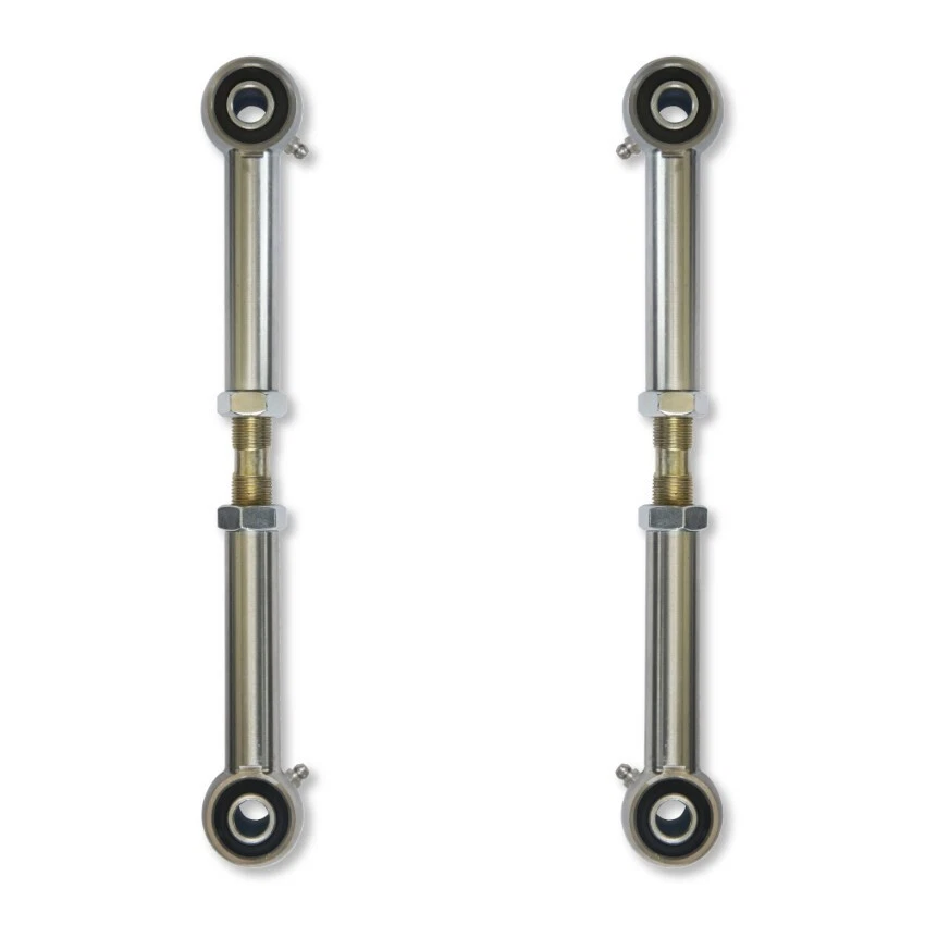 Our adjustable extended rear sway bar links provide ultimate adjustability & a rattle free ride! Benefits: Heat Treated, Zinc Plated Chromoly Housing In Vehicle Double Adjustable Design JK/JL 1.5"-4.5" lift size, JT 1.5"-3.0" lift size Injection Molded, Thermal Elastomer Bushings Rebuildable/Serviceable Includes: (1) pair of rear sway bar extended links
