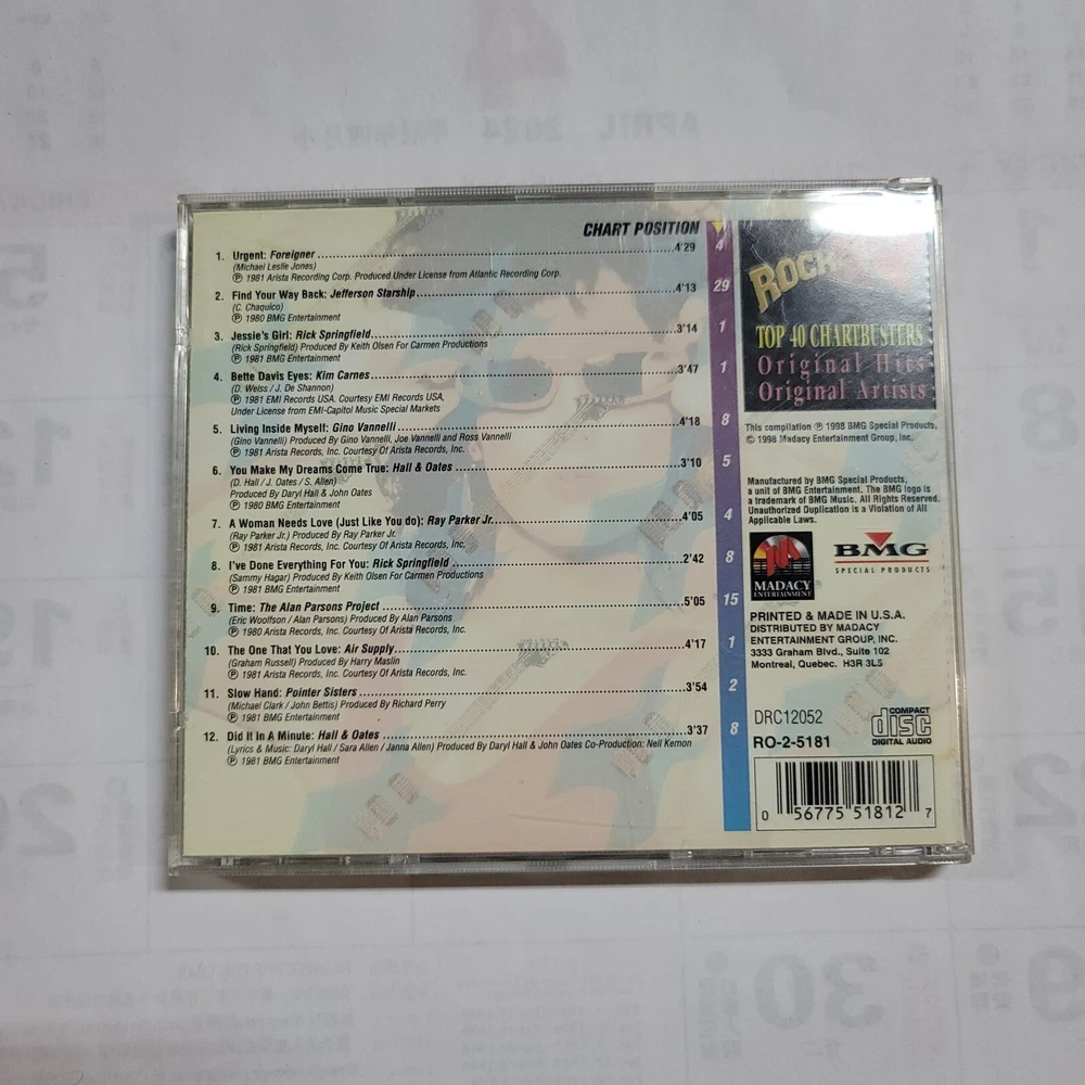 Producer:Harry Maslin, Keith Olsen, Joe T. Vannelli Project, Jr. Ray Parker, Daryl Hall, Ross Vannelli, Richard Perry, John Oates, Gino Vannelli, Alan Parsons ProjectGenre:Easy Listening, Wedding Collections, New Age & Easy ListeningStyle:Wedding CollectionsRelease Title:Rock On 1981: Bette Davis EyesRun Time:46 min.Artist:Various ArtistsRelease Year:1998Format:CD