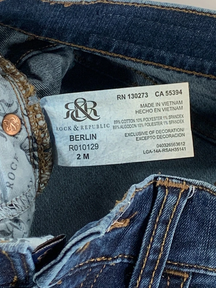 eBay Listing Template Our Listings Add to Favorites Feedback About Us Contact Us Rock & Republic Berlin jeans! These beautifully crafted boot cut jeans. Feature: • Size: 2M (26" Waist) • Style: Berlin Boot Cut • Material: 89% Cotton, 10% Polyester, 1% Spandex • Color: Dark Blue Wash • Made in Vietnam • RN: 130273 • Model: R010129 Condition: Pre-loved but well-maintained. Classic R&R quality construction with signature copper hardware and detailed stitching. Perfect for that casual-chic look! Why You'll Love These: Flattering boot cut silhouette pairs perfectly with heels or boots. Premium stretch denim ensures all-day comfort while maintaining shape. Shopping Tip: Follow our store for exclusive deals and join our VIP list for secret sales! More designer denim treasures await. SKU: 4396 Please check out my other items for sale! Shop by Categories Women's Clothing Women's Shoes Handbags Jewelry Men's Clothing Men's Shoes Hats Watches Useful Links Our Listings Add to Favorites Feedback About Us Contact Us Store Newsletter Add Store to your Favorites and receive email newsletters about new items and special promotions! Subscribe Now